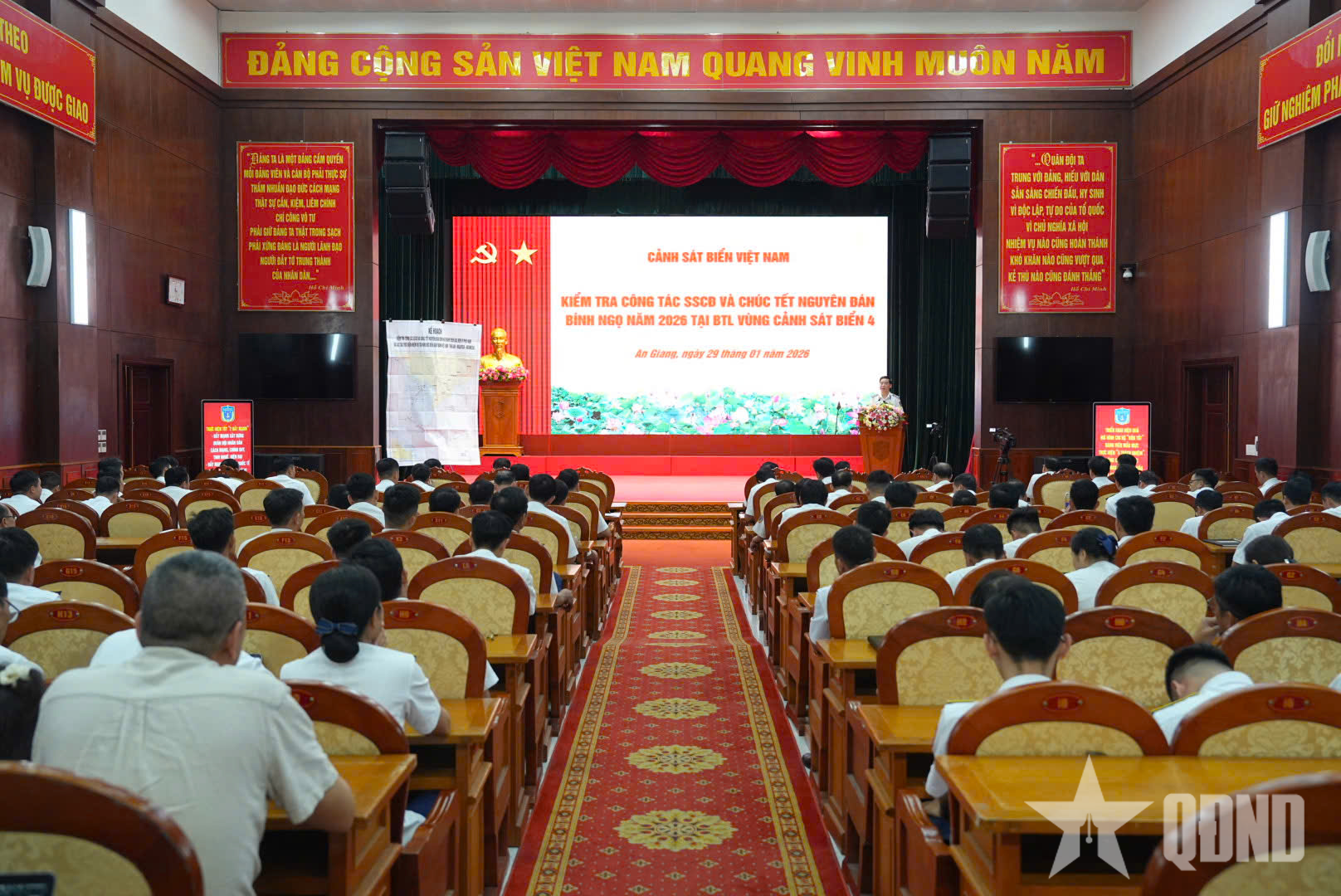 Đồng chí Chính ủy Cảnh sát biển Việt Nam yêu cầu Vùng Cảnh sát biển 4 duy trì nghiêm chế độ trực SSCĐ trong dịp Tết; tổ chức tốt các hoạt động vui xuân, đón Tết an toàn, tiết kiệm, lành mạnh; quan tâm chăm lo đầy đủ đời sống vật chất, tinh thần cho cán bộ, chiến sĩ, nhất là các lực lượng làm nhiệm vụ trực Tết trên biển, đảo, vùng xa. Đồng thời, tiếp tục quán triệt, thực hiện nghiêm các chỉ thị, mệnh lệnh của cấp trên; giữ vững kỷ luật, kỷ cương; xây dựng đơn vị vững mạnh toàn diện, “Mẫu mực, tiêu biểu”.