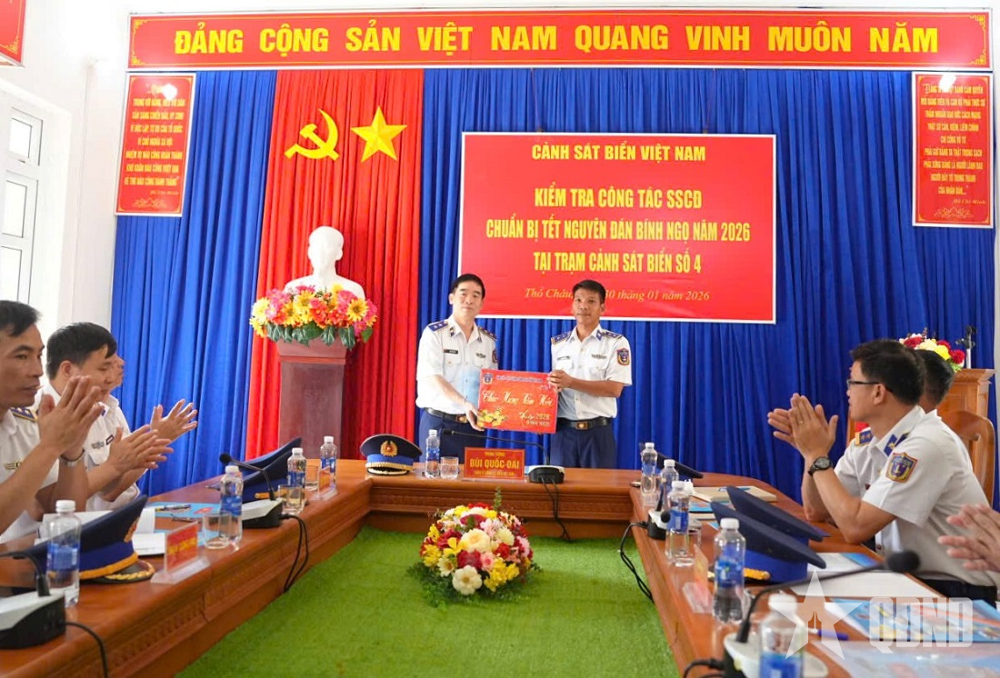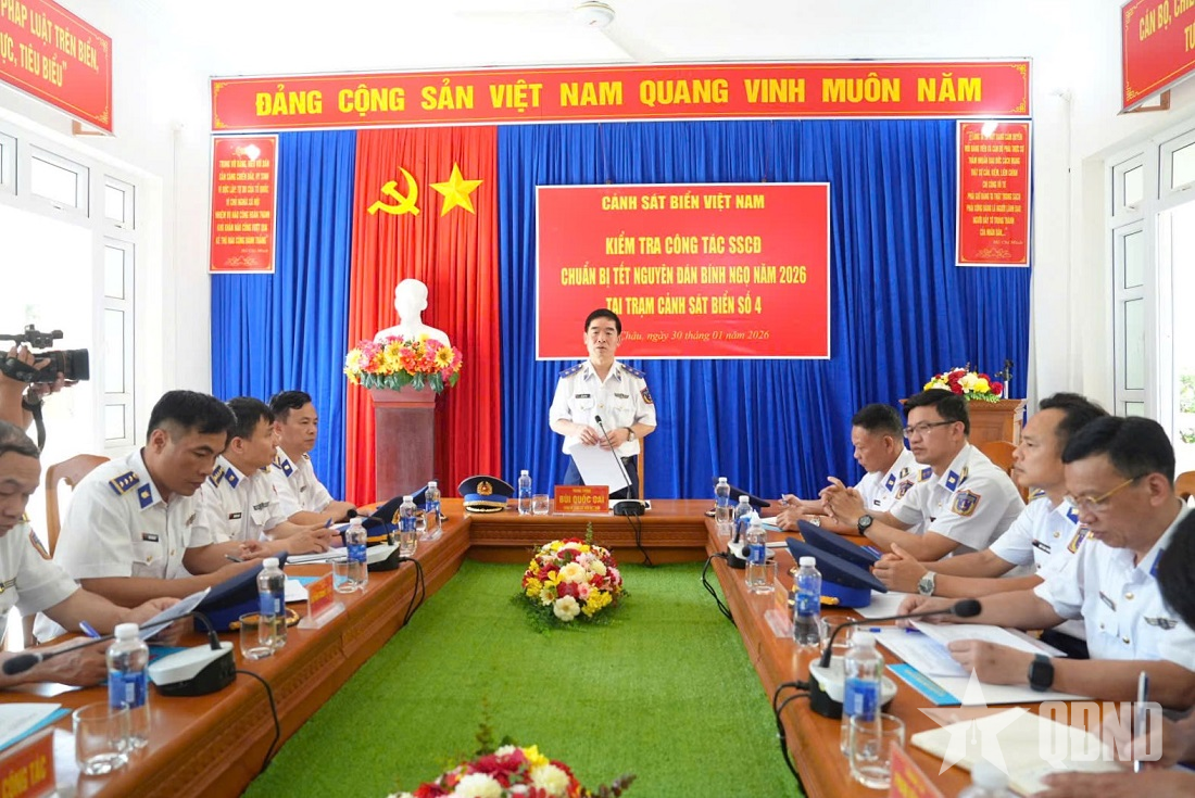 Sáng cùng ngày, đoàn đến kiểm tra công tác trực sẵn sàng chiến đấu và chuẩn bị đón Tết Nguyên đán Bính Ngọ 2026 tại Trạm Cảnh sát biển 4 (Bộ tư lệnh Vùng Cảnh sát biển 4); thăm hỏi, động viên, chúc Tết cán bộ, chiến sĩ đang thực hiện nhiệm vụ tại đây.