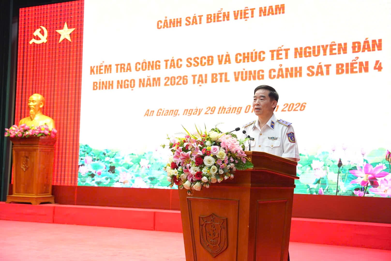 Đồng chí Chính ủy Cảnh sát biển Việt Nam yêu cầu Bộ Tư lệnh Vùng Cảnh sát biển 4 duy trì nghiêm chế độ trực SSCĐ trong dịp Tết Nguyên đán Bính Ngọ năm 2026; tổ chức tốt các hoạt động vui xuân, đón Tết an toàn, tiết kiệm, lành mạnh; quan tâm chăm lo đầy đủ đời sống vật chất, tinh thần cho cán bộ, chiến sĩ, nhất là các lực lượng làm nhiệm vụ trực Tết trên biển, đảo, vùng xa. Đồng thời, tiếp tục quán triệt, thực hiện nghiêm các chỉ thị, mệnh lệnh của cấp trên; giữ vững kỷ luật, kỷ cương; xây dựng đơn vị vững mạnh toàn diện, “Mẫu mực, tiêu biểu”.