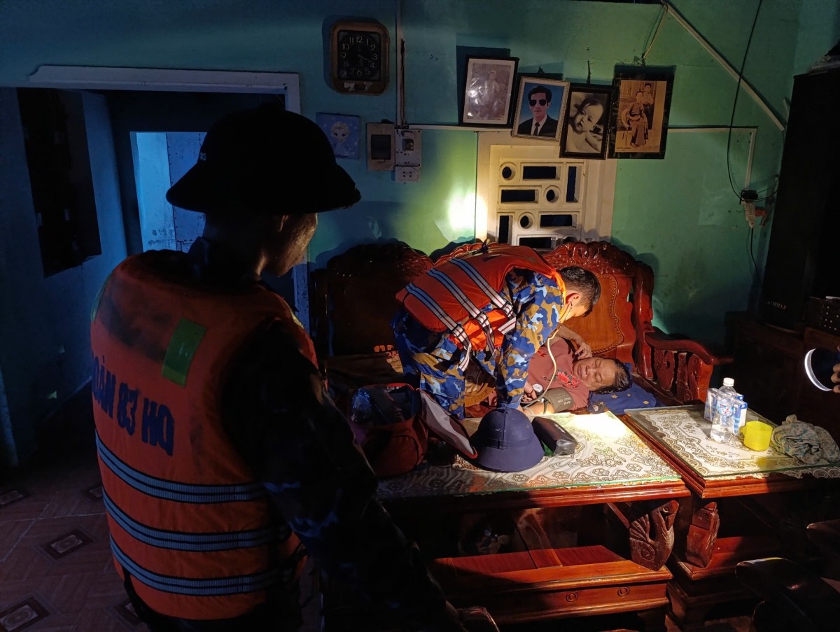 Cán bộ, chiến sĩ Lữ đoàn 83 kiểm tra sức khỏe, hỗ trợ người dân di chuyển ra khỏi vùng ngập lụt. (Ảnh: Quân chủng Hải quân)