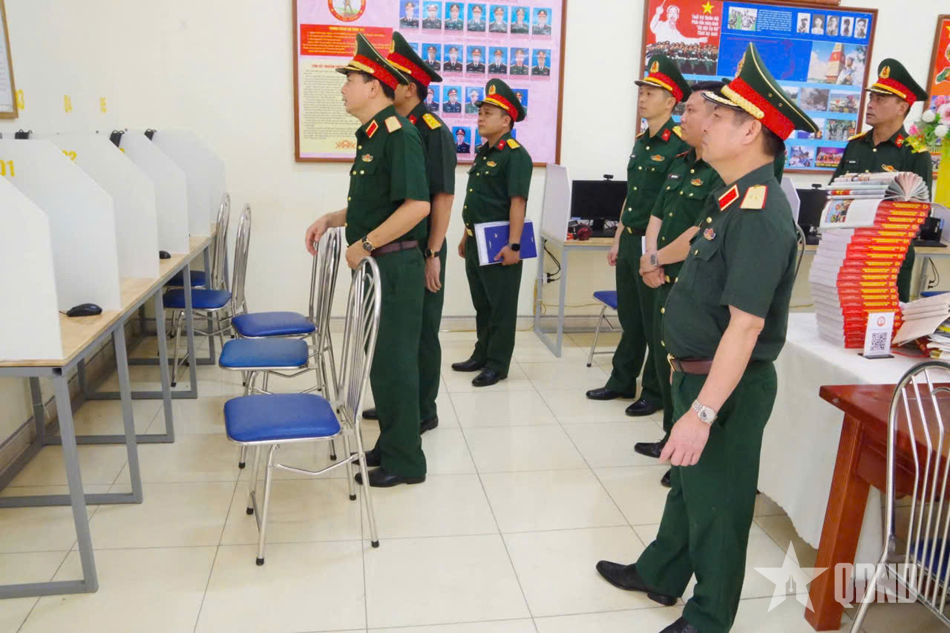 Thiếu tướng Trần Đại Thắng, Bí thư Đảng ủy, Chính ủy Quân đoàn 12 cùng đoàn công tác kiểm tra nền nếp giáo dục chính trị tại Trung đoàn 141.