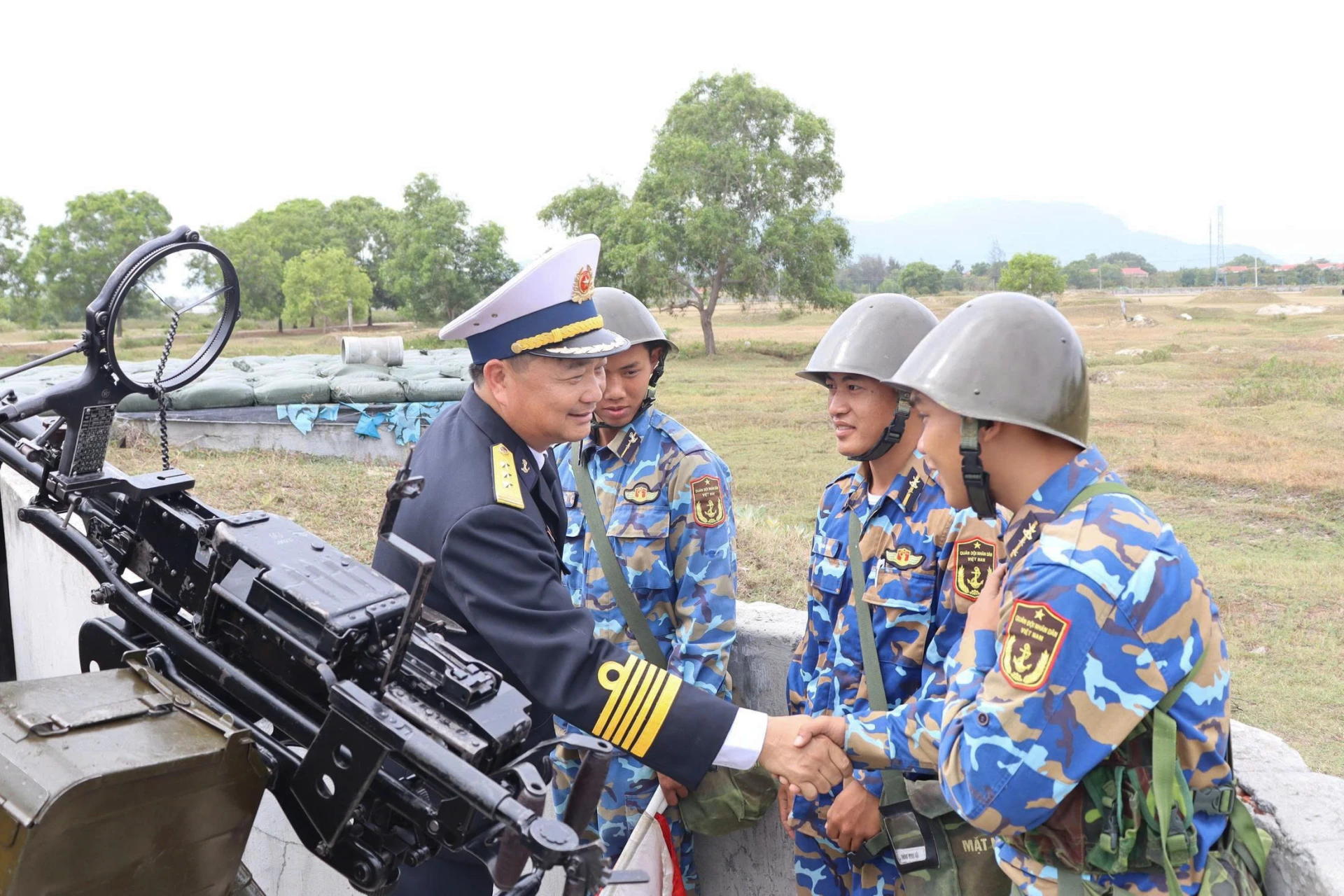 Thượng tá Bùi Xuân Bình động viên các chiến sĩ thực hiện nhiệm vụ trực.