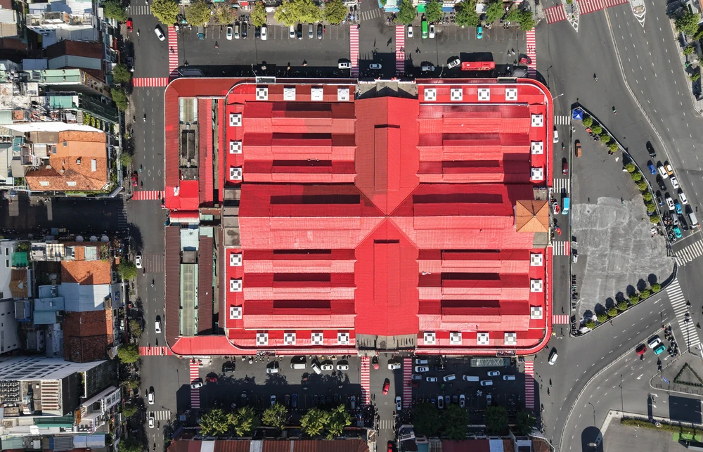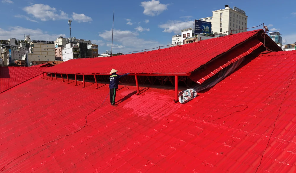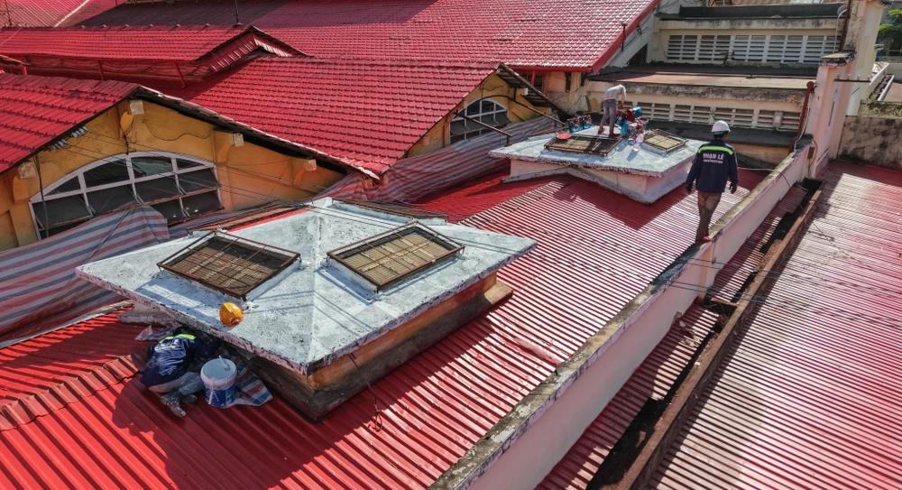 Khoảng 90% phần mái tôn của chợ đã được phủ sơn đỏ, tạo điểm nhấn độc đáo cho công trình kiến trúc hơn 100 tuổi giữa lòng đô thị hiện đại.