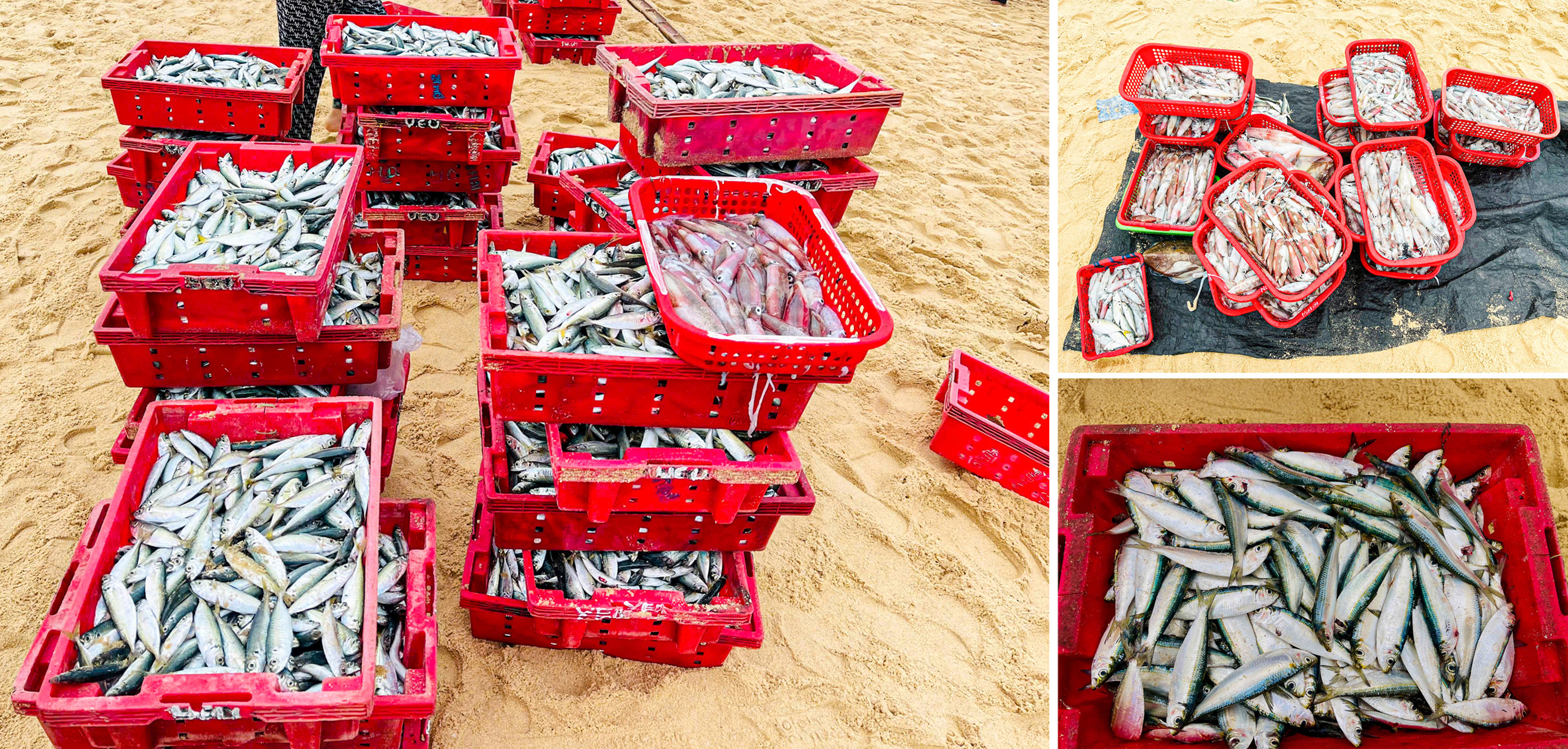 Hải sản được phân loại ngay tại chỗ. Những người phụ nữ ngồi thành từng nhóm, thoăn thoắt chia cá theo kích cỡ, chủng loại. Một chuyến biển có thể mang về đủ loại sản vật như cá đục, cá trích, mực, ruốc… nhưng cũng có khi chỉ thu được ít ỏi phản ánh rõ sự bấp bênh của nghề biển.