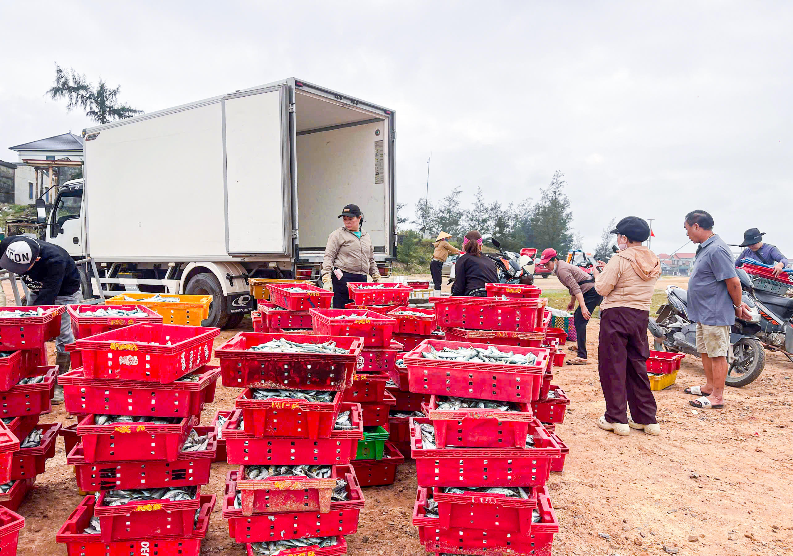 Ở phía ngoài, các thương lái đã có mặt từ sớm, xe đông lạnh nối đuôi chờ sẵn. Hải sản sau khi được định giá nhanh chóng được đưa đi tiêu thụ. Dù đầu mùa giá có phần nhỉnh hơn, nhưng chi phí nhiên liệu, nhân công ngày càng tăng khiến thu nhập thực tế của ngư dân không cao.