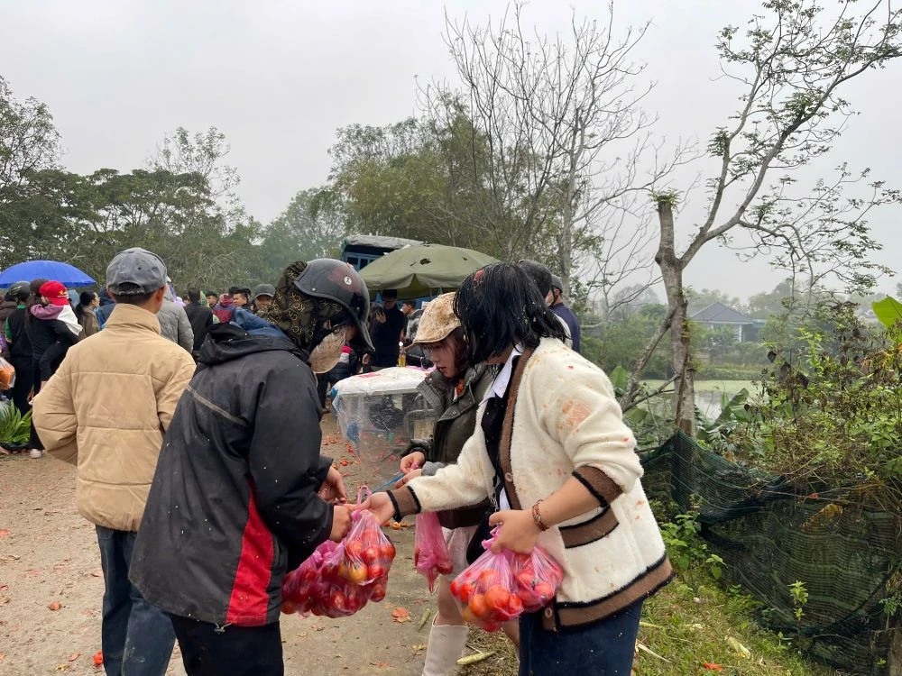 Ném cà chua được coi như “đặc sản” tại phiên chợ Chuộng. Người dân quan niệm càng bị ném nhiều cà chua trong ngày đầu năm thì càng gặp may mắn.