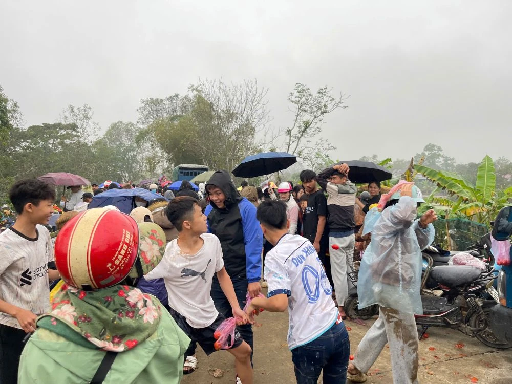 Từ sáng sớm, dòng người đã đổ về khu vực triền đê ven sông Hoàng, nơi giáp ranh các địa phương trong vùng. Không khí phiên chợ rộn ràng, náo nhiệt nhưng vẫn giữ được nét mộc mạc của một chợ quê đầu xuân.