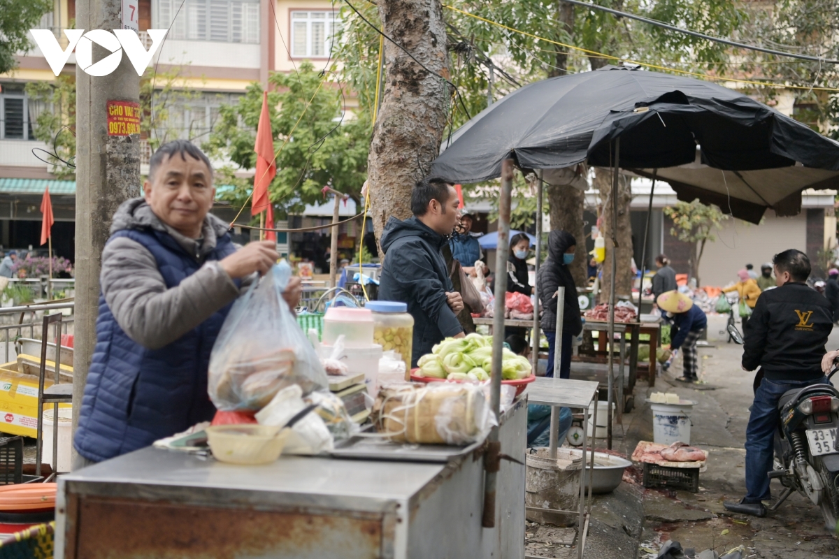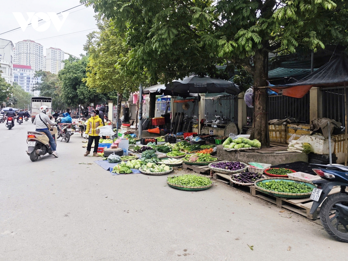 Tuy nhiên, tại một số nơi trên địa bàn Hà Nội, chợ cóc, chợ tạm vẫn lấn chiếm để buôn bán vào giờ cao điểm, gây ách tắc giao thông.