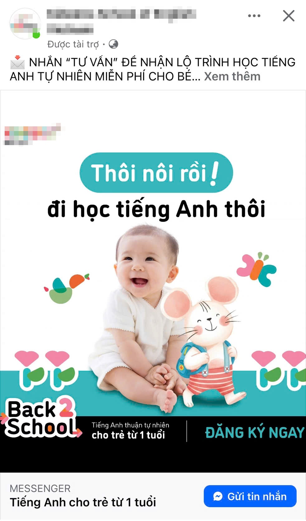 Một trung tâm chạy quảng cáo khóa học tiếng Anh dành cho trẻ 1 tuổi. Ảnh: Facebook trung tâm.