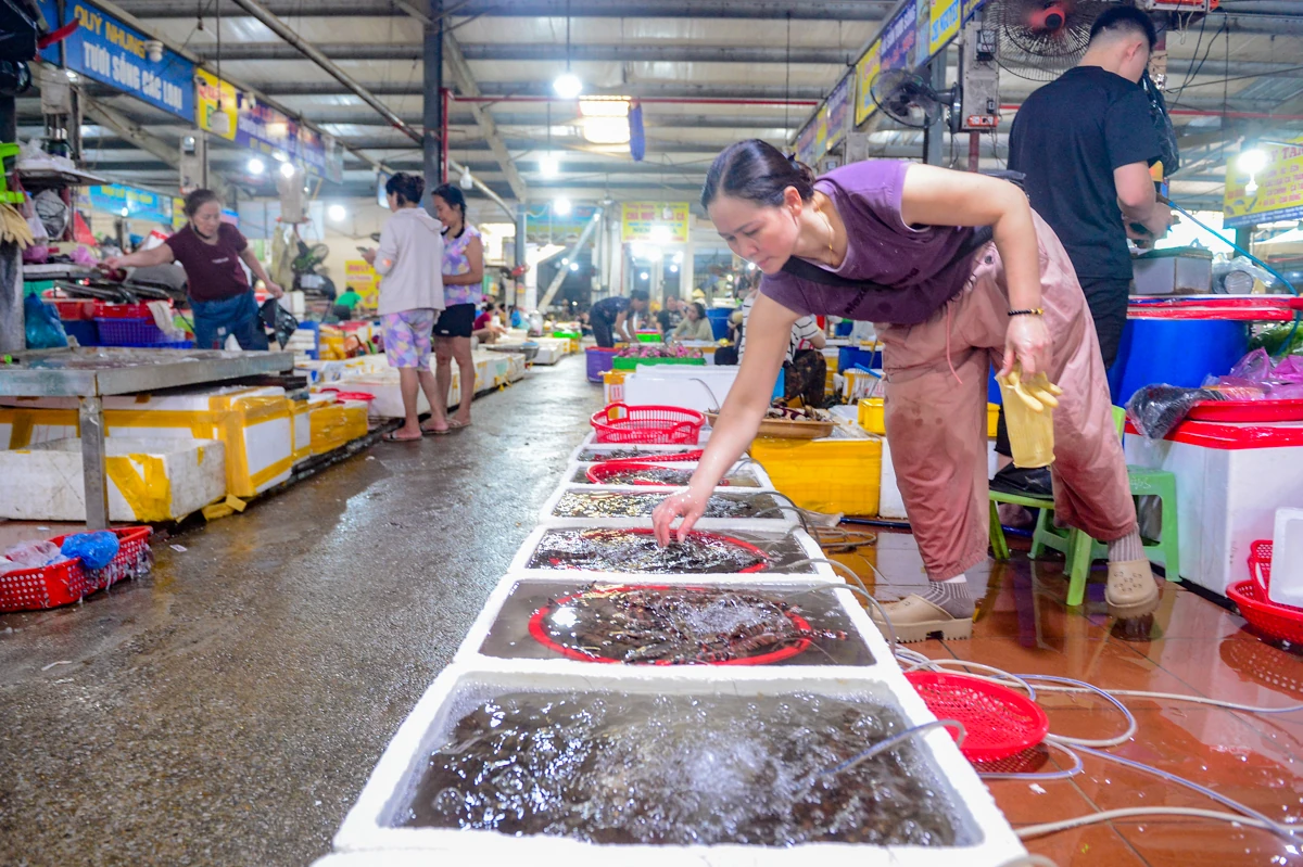 Không khó để bắt gặp hình ảnh các tiểu thương niềm nở giới thiệu từng loại hải sản, sẵn sàng tư vấn cách chọn hàng tươi, cách chế biến ngon.