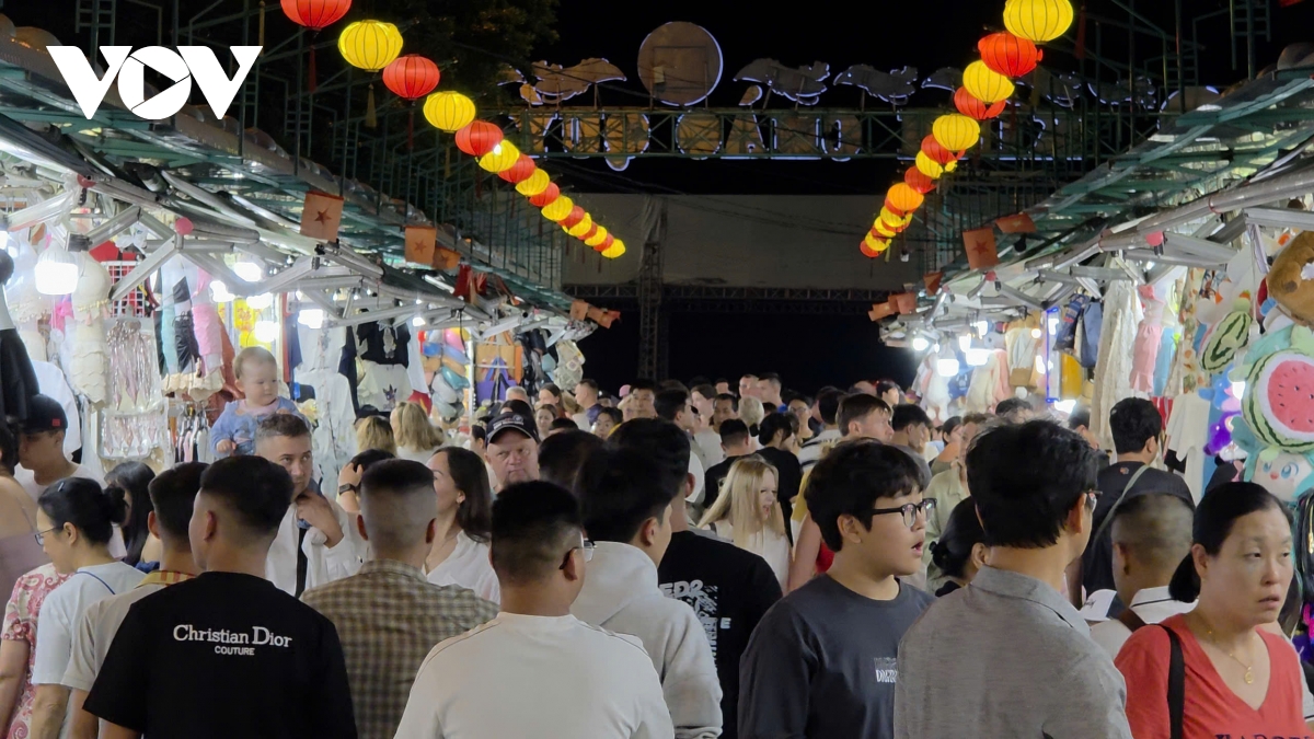 21h ngày 14/11 tại chợ đêm Nha Trang (tỉnh Khánh Hòa), hàng nghìn khách du lịch đổ về đây mua sắm. Bên cạnh những sản phẩm đặc trưng của địa phương như trầm hương, yến sào, các mặt hàng thủ công mỹ nghệ, thì quần áo, giày dép, túi xách vẫn thu hút du khách hơn cả.