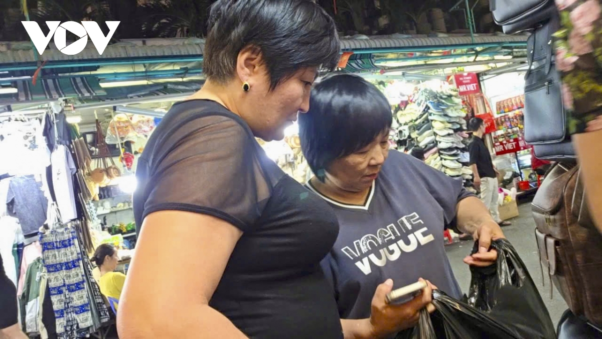 Khách hàng Hàn Quốc rất hào hứng chọn và thử những món đồ tại "thiên đường" hàng giả.