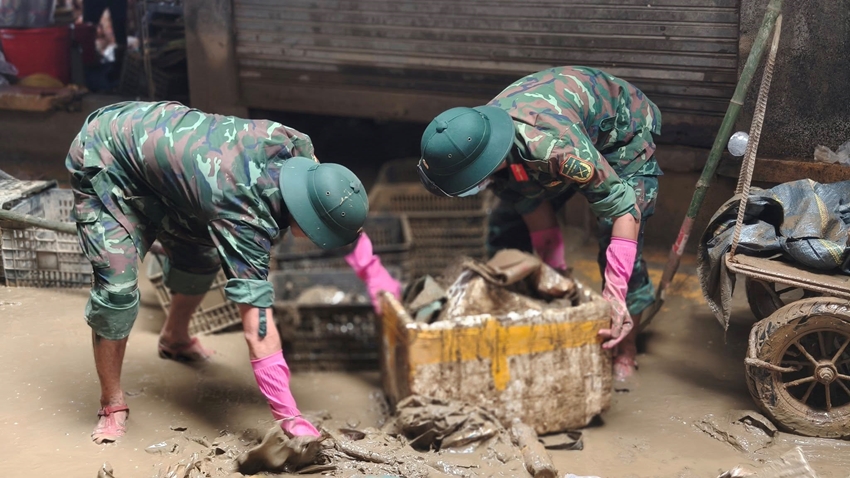 Hình ảnh cán bộ, chiến sĩ bộ đội cùng bà con tiểu thương bì bõm trong bùn, xúc rác, vận chuyển hàng hư hỏng ra khỏi khu vực chợ đã trở thành minh chứng sống động cho tinh thần đoàn kết, sẻ chia và ý chí vượt khó của người dân Huế sau thiên tai.