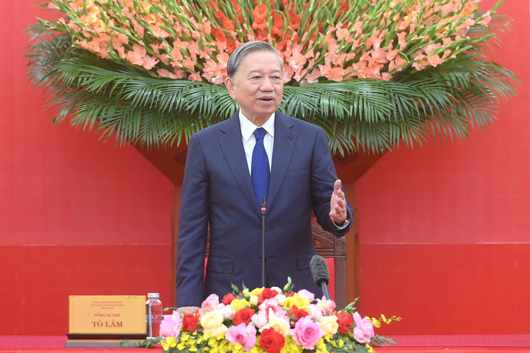 Tổng Bí thư Tô Lâm phát biểu tại buổi gặp mặt. (Ảnh: ĐĂNG KHOA)