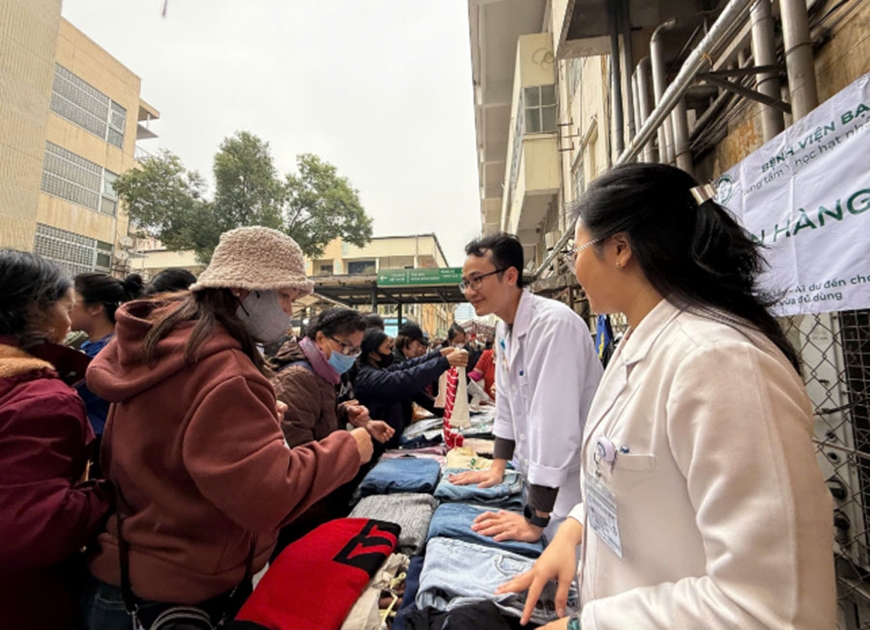 Tại Bệnh viện Bạch Mai, Bệnh viện K, Bệnh viện Hữu nghị Việt Đức... những "phiên chợ 0 đồng", bữa cơm tất niên đủ đầy dinh dưỡng được tổ chức đã mang đến cho người bệnh sự ấm áp, sẻ chia.
