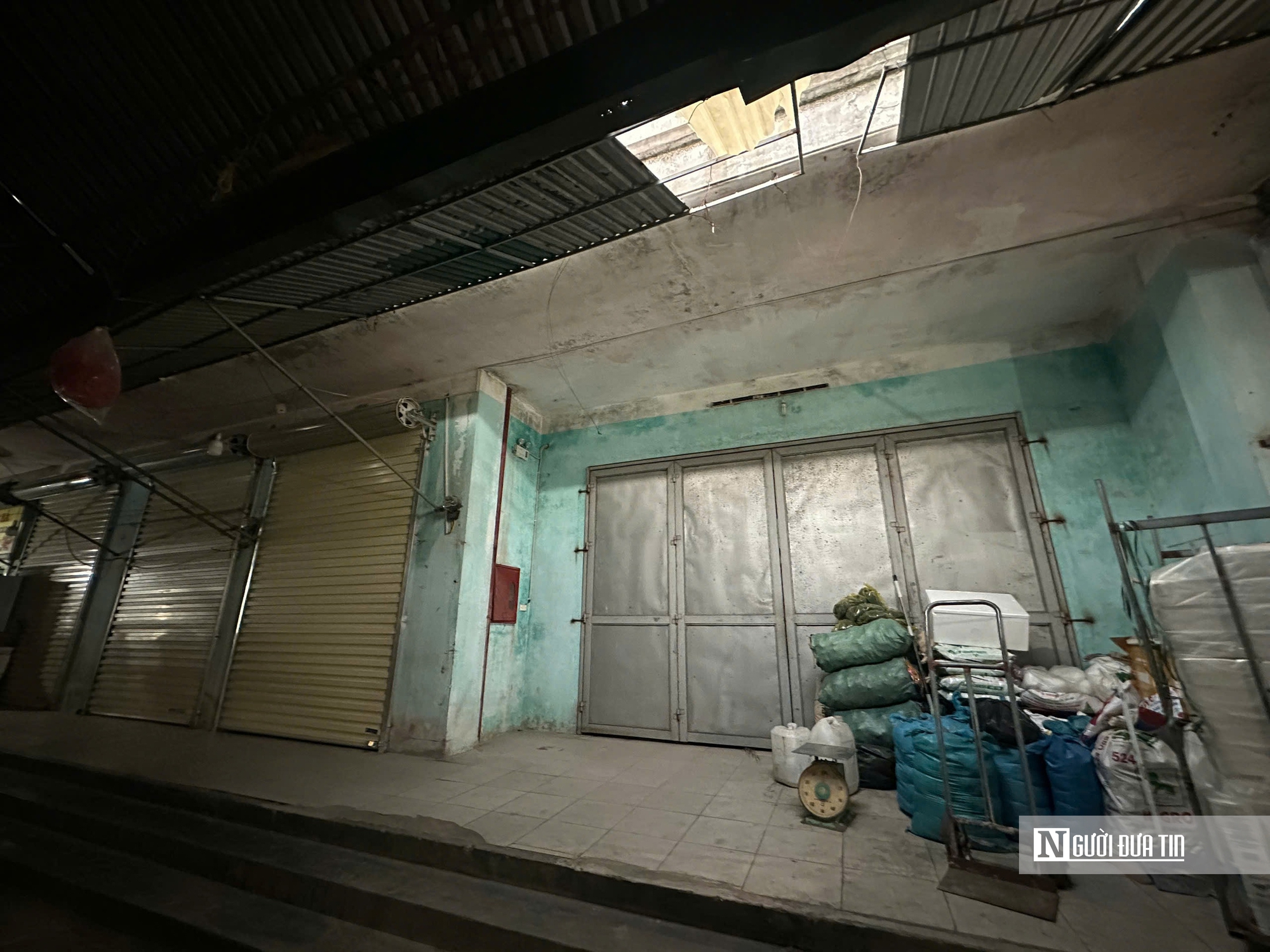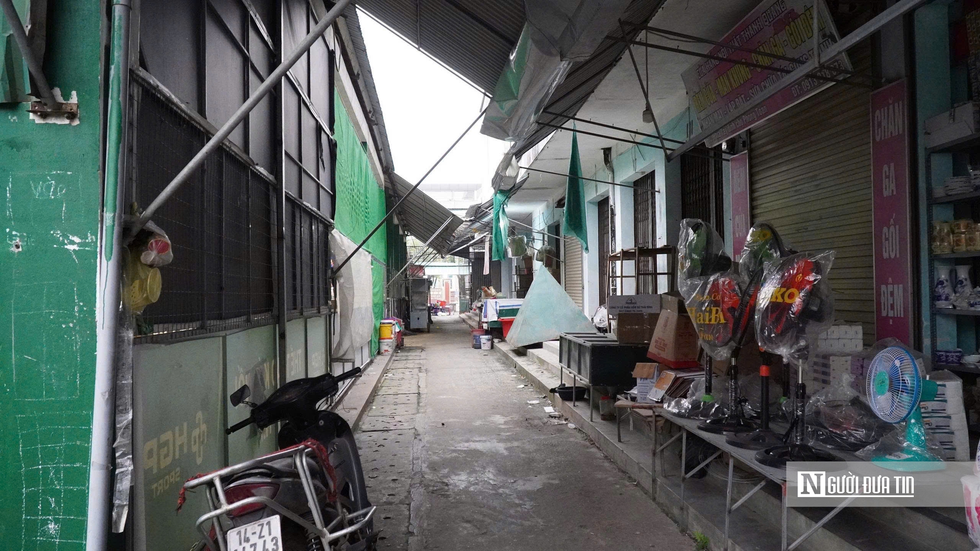 Những lối đi từng nhộn nhịp tiếng rao hàng, giờ trở nên trống trải, chỉ còn tiếng gió lùa qua các mái tôn.