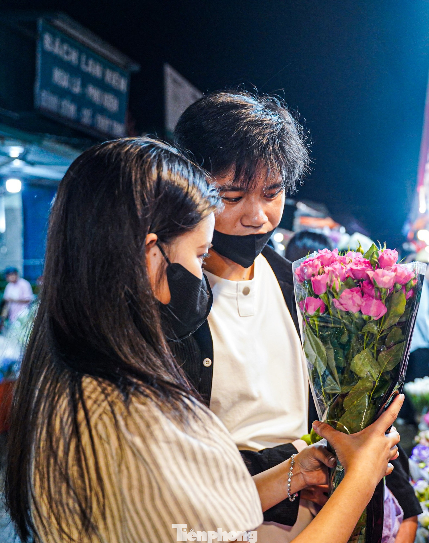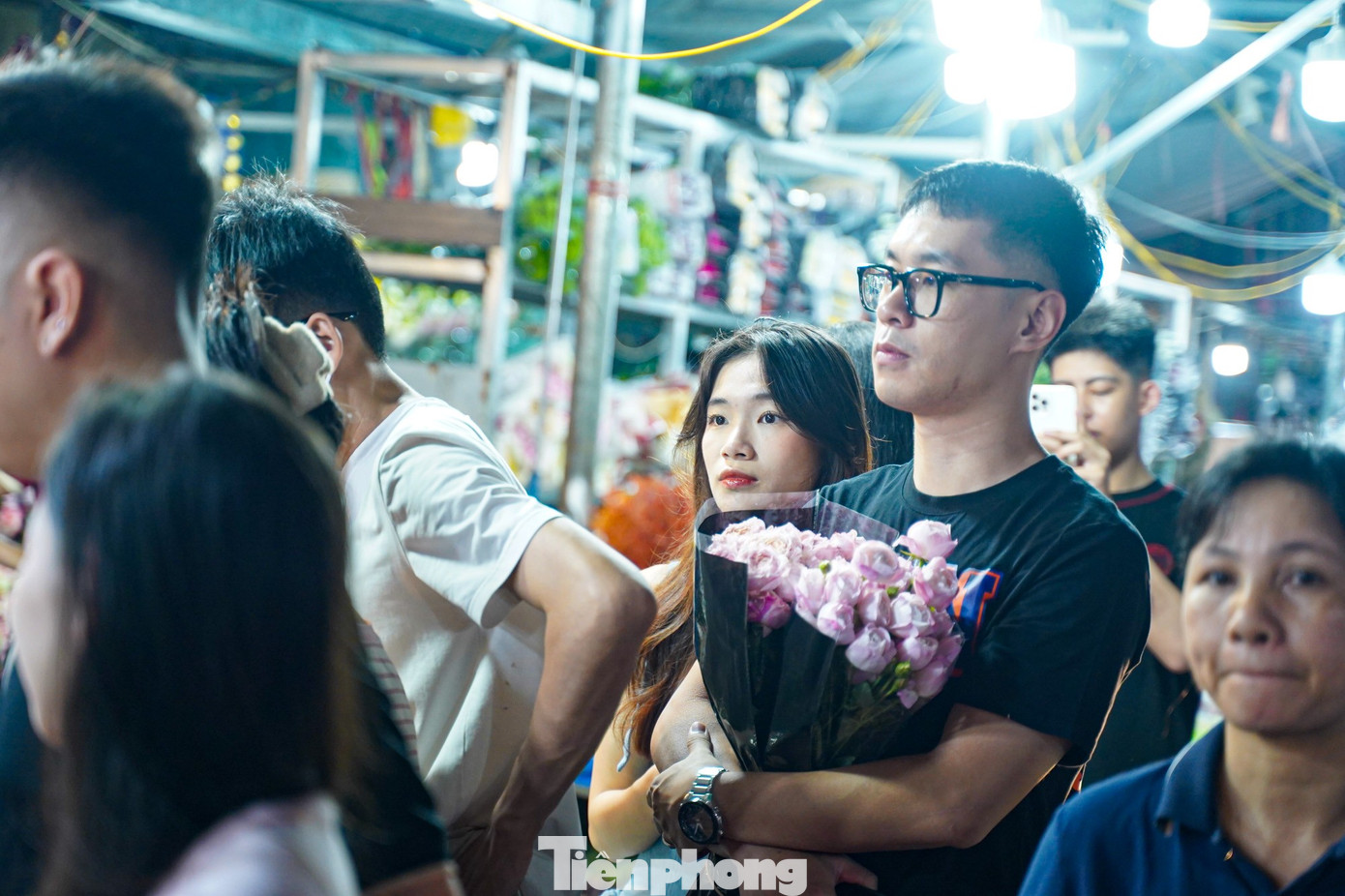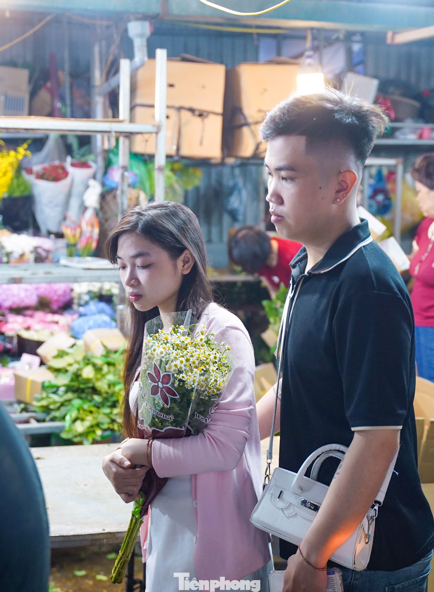Nhiều chàng trai đưa bạn gái đến chợ hoa đêm, chọn những bó hoa tươi đẹp nhất làm quà tặng dịp 20/10.