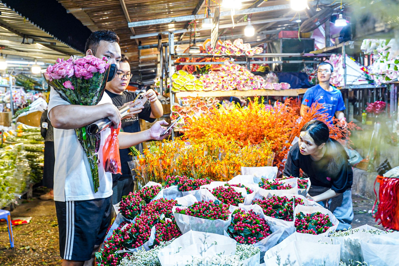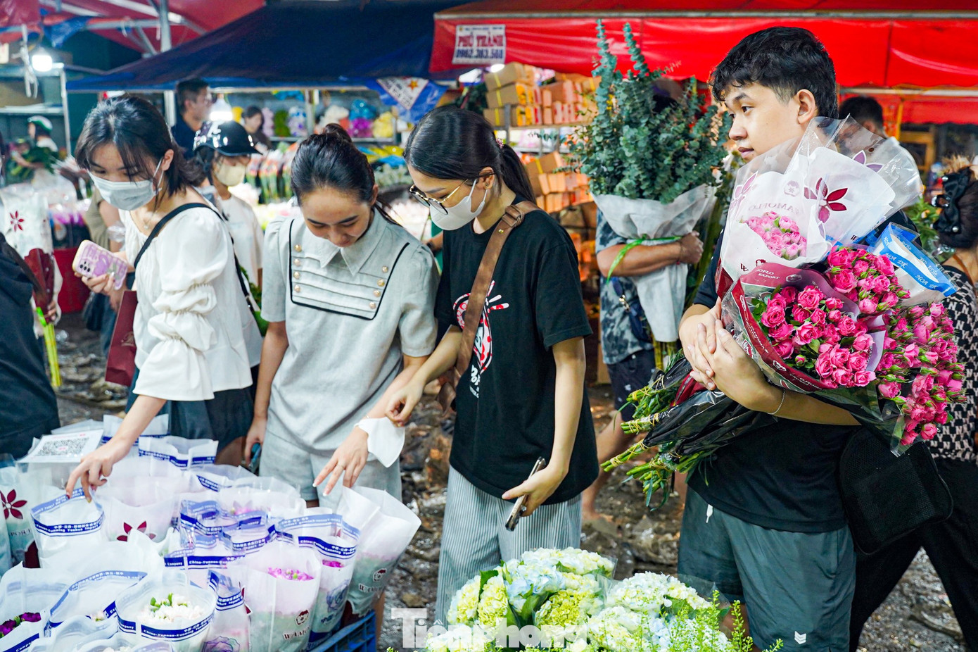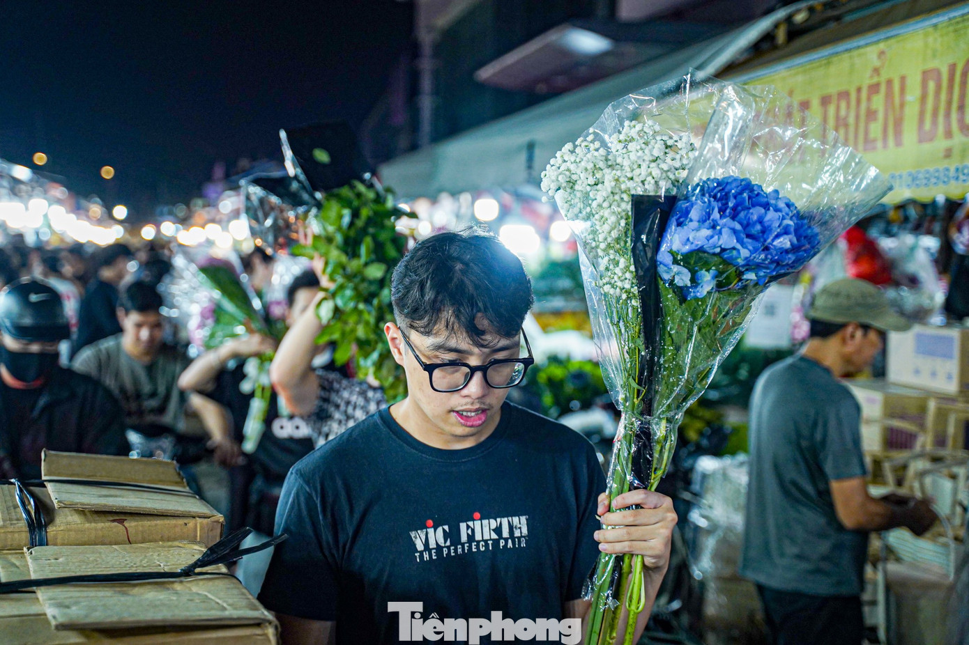 Nhiều chàng trai đưa bạn gái đến chợ hoa đêm, chọn những bó hoa tươi đẹp nhất làm quà tặng dịp 20/10.