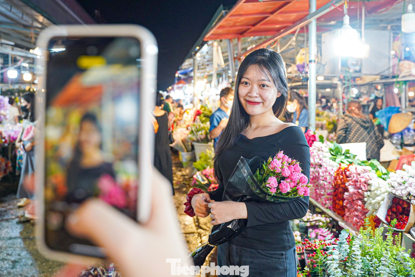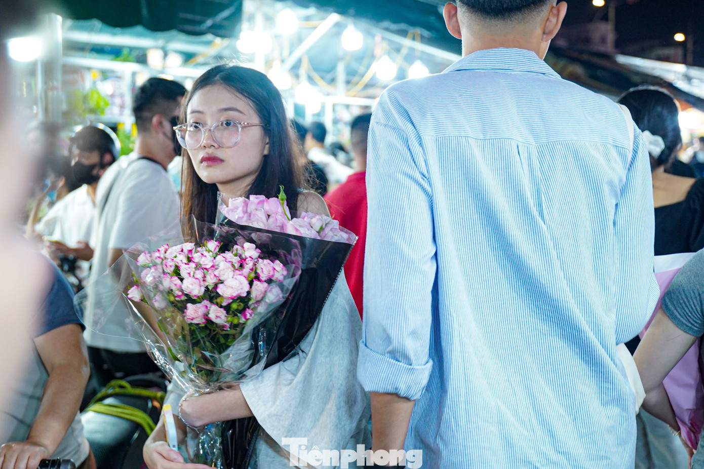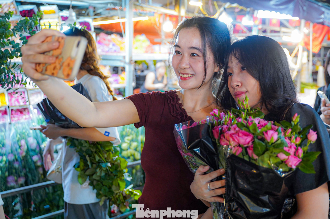 Nhiều bạn nữ cũng ghé chợ hoa để tự tặng hoa cho chính mình. “Nếu chưa có người yêu thì tự mua hoa tặng mình cũng vui mà, coi như một cách tận hưởng ngày đặc biệt”, bạn Như Quỳnh (áo đen) chia sẻ.