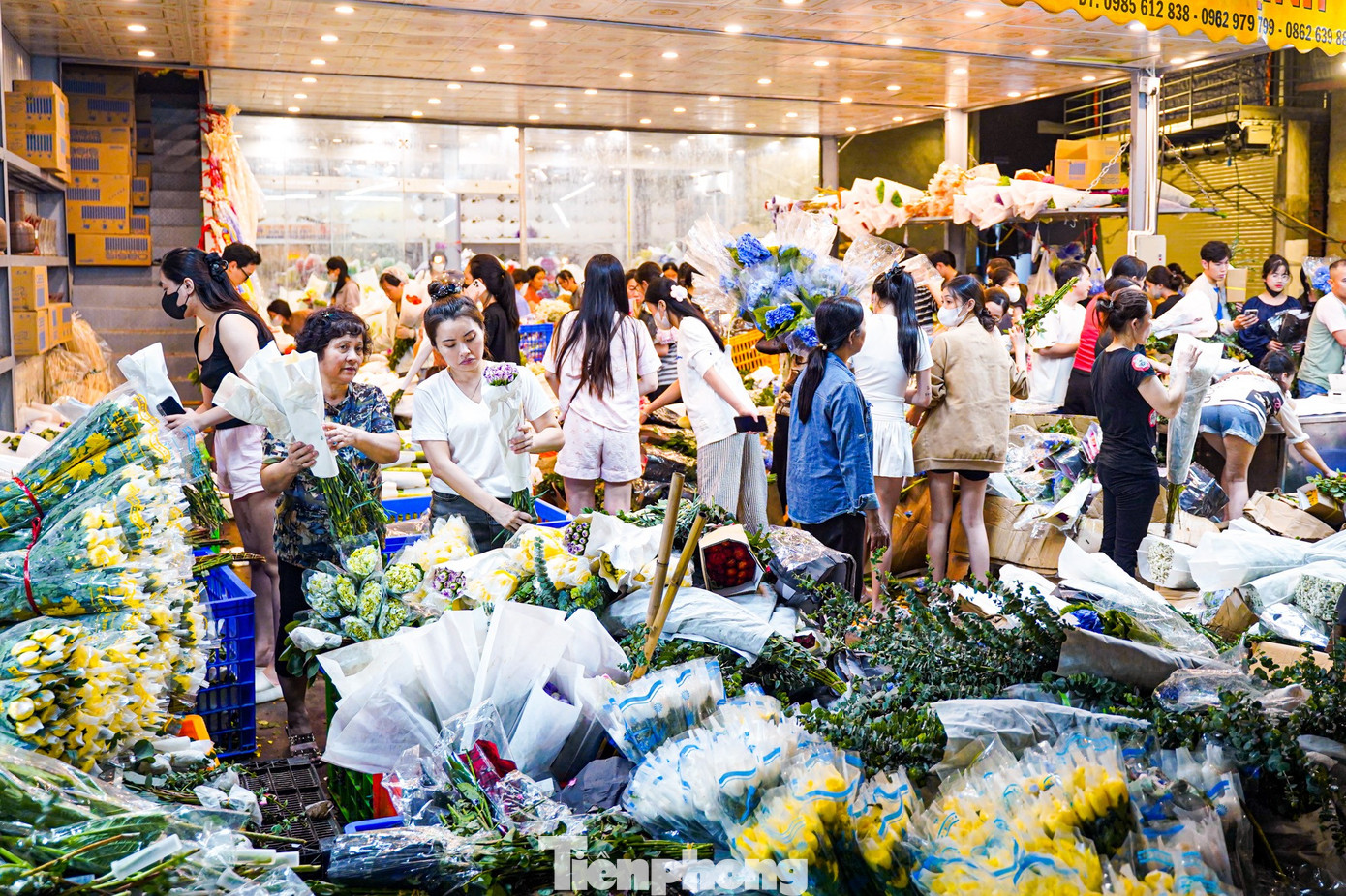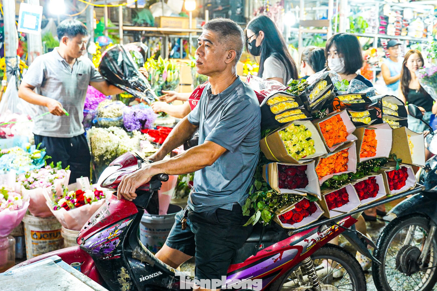 Càng gần đến ngày Phụ nữ Việt Nam 20/10, chợ hoa Quảng Bá càng trở nên đông đúc, nhộn nhịp với không khí mua bán tấp nập suốt đêm.