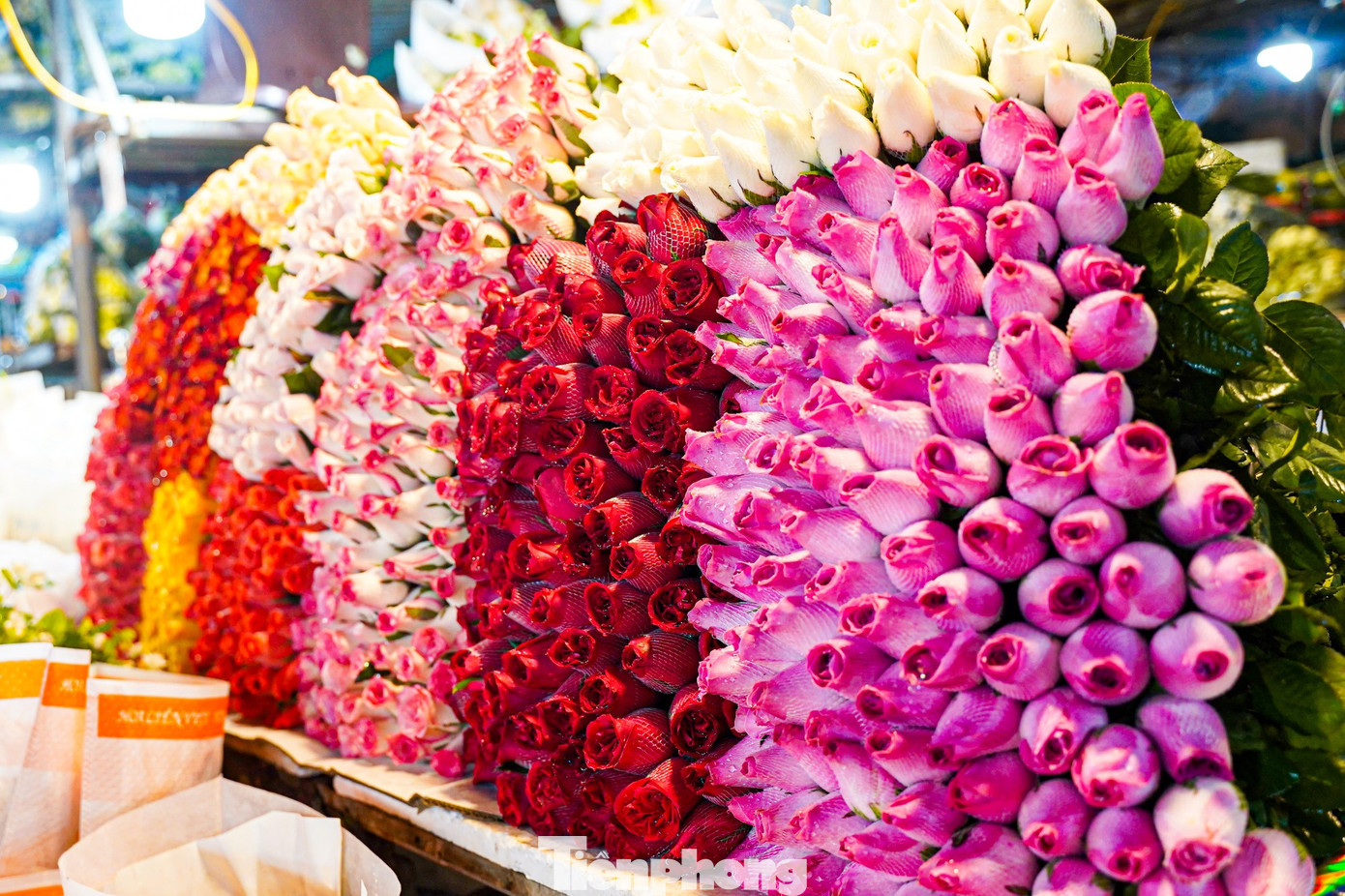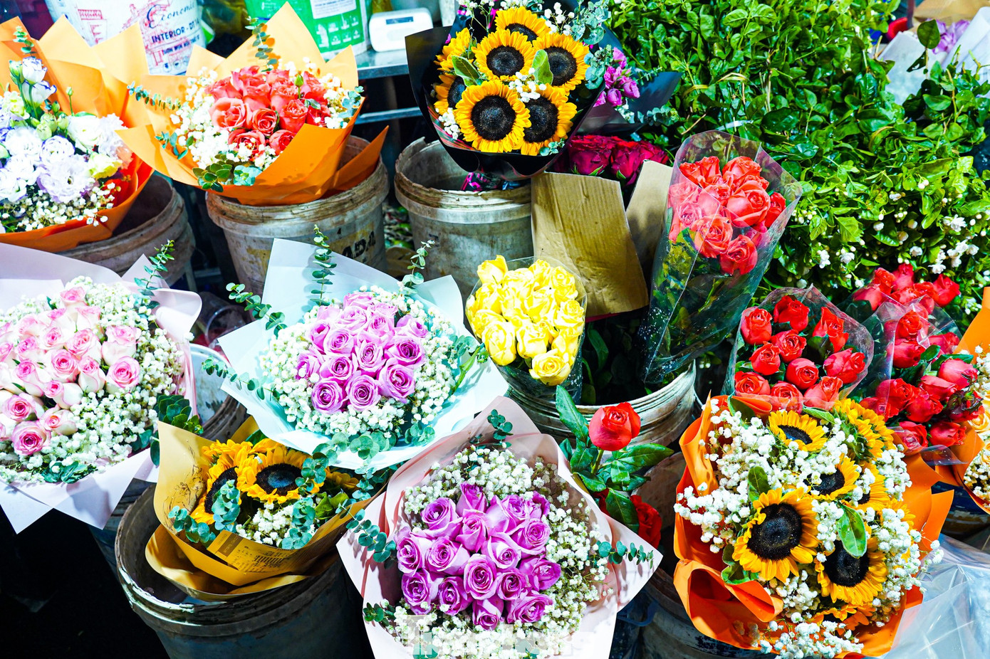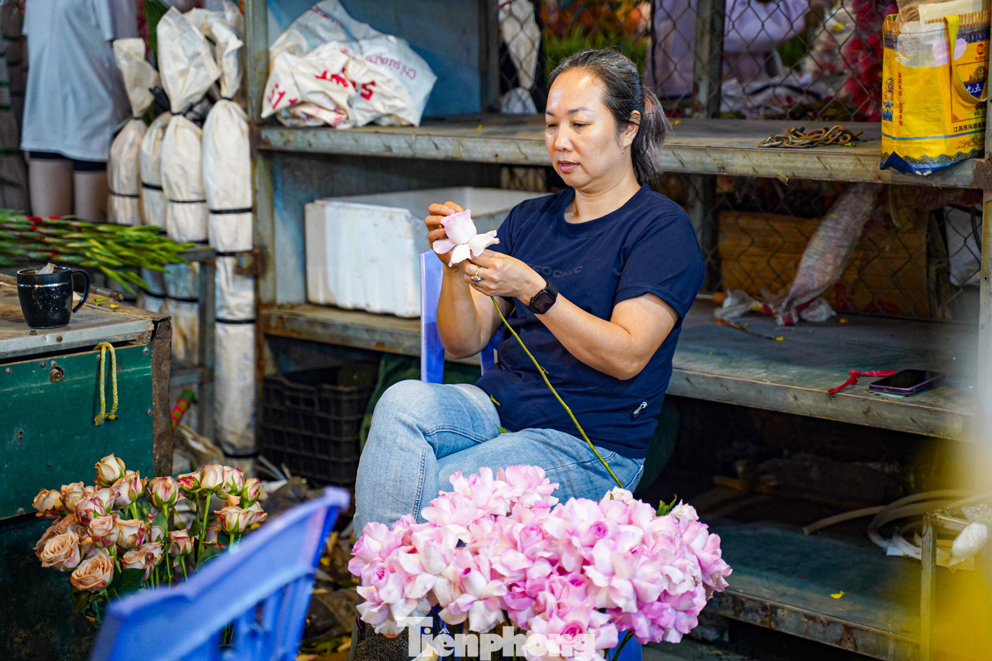Bà Duyên, một tiểu thương tại chợ, cho biết: “Dịp 20/10, hoa hồng bán chạy nhất nên tôi nhập nhiều gấp ba, bốn lần ngày thường. Cả đêm tôi gần như không ngơi tay để gói hoa cho khách.”