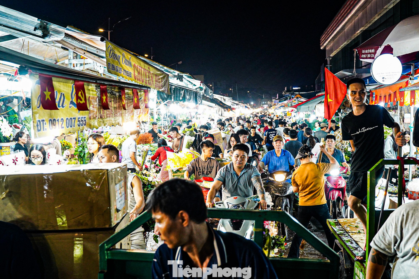 Không khí tập nập tại chợ hoa đêm Quảng Bá rạng sáng 19/10.