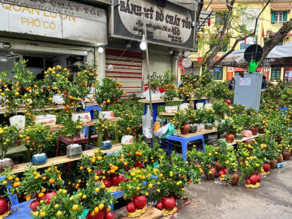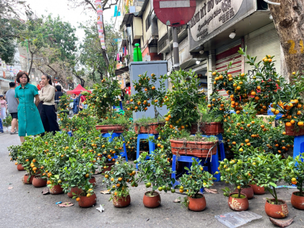 Hàng trăm chậu quất cảnh được bày bán. Những chậu quất mini bày bàn trà nhỏ xinh được bán với giá 120.000 - 150.000 đồng/cây. Loại quất tạo dáng bonsai có giá từ 500.000 - 800.000 đồng/cây. Bên cạnh quất, điểm nổi bật của chợ hoa là hoa đào. Chủ yếu được bày bán ở chợ hoa Hàng Lược là đào Nhật Tân, với màu đào phai và đào bích. Cả những bó đào tăm xinh xắn cũng "góp mặt" vào phiên chợ hoa Tết.
