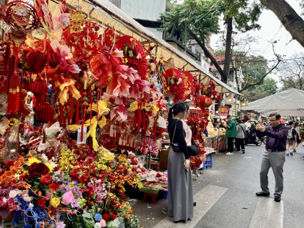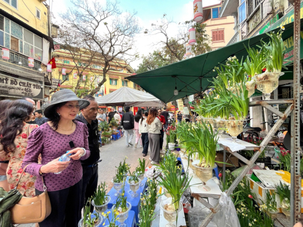 Chiều 28 Tết, chợ hoa Hàng Lược đông đúc, tấp nập. Không chỉ là nơi mua bán, chợ hoa còn là điểm "check in" của cả người lớn tuổi đến các bạn trẻ. Theo Chủ tịch UBND phường Hoàn Kiếm Trịnh Hoàng Tùng, chợ hoa Xuân Hàng Lược năm nay được tổ chức với nhiều điểm nhấn mới, bảo đảm hài hòa giữa gìn giữ nét truyền thống và phù hợp với nhịp sống đô thị hiện đại.
