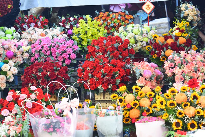 Các mặt hàng truyền thống như hoa hồng, hoa cúc, hoa ly và cẩm chướng chiếm ưu thế về số lượng. Hoa hồng, mặt hàng có nhu cầu cao nhất trong dịp lễ, được các tiểu thương dự trữ khối lượng lớn.