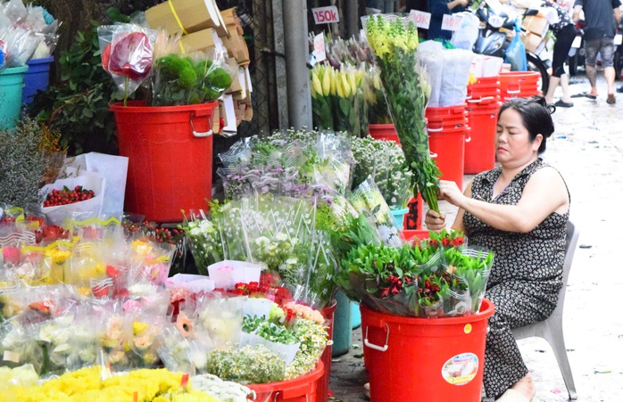 Bà Thu Nga, chủ tiệm hoa tươi, cho biết những ngày này là lúc chợ hoa nhộn nhịp nhất trong năm. “Khách lẻ với mấy chủ shop đến sớm để chọn hoa. Hoa hồng giờ tầm 150.000 - 300.000 đồng một bó, có tăng chút nhưng cũng phải thôi, vì đang vào mùa. Tụi tôi phải làm liên tục, nhập hàng thêm để kịp bán”.