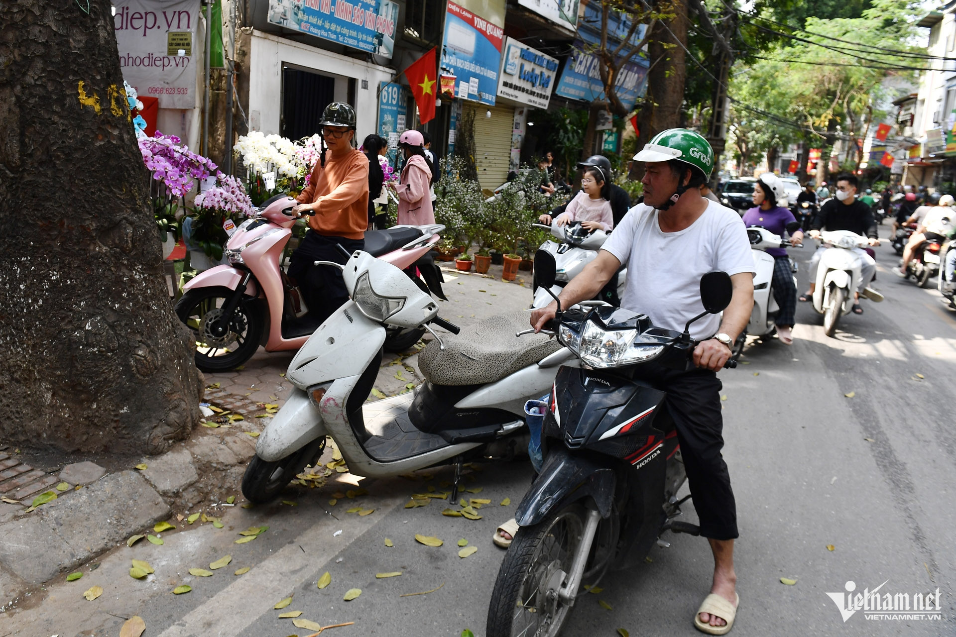 Mặc dù sát giờ nghỉ, giá hoa có giảm nhưng kiểu bán hàng nói thách vẫn diễn ra. Có người khẳng định đã hạ giá nhiều nhưng khi khách trả nhiệt tình vẫn không bán. Trong ảnh, một thanh niên cầm hai cành đào hai tay chờ khách tại chợ hoa Lạc Long Quân, rao bán 500.000 và 700.000 đồng. Một vị khách than: "Sao giờ này còn bán đắt thế", anh ta liền nói: "Chị cứ trả giá đi, hợp lý thì bán".