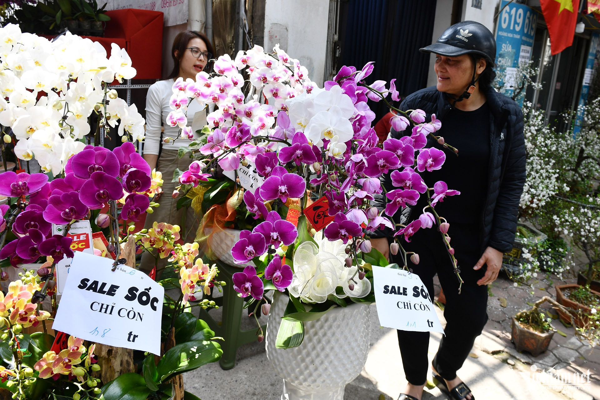 Một cửa hàng dán quảng cáo giảm giá lan hồ điệp khá rẻ. Theo đó có những cây chỉ 350.000 đồng bày bên trong, còn phía ngoài cửa là 1 triệu đồng. Cách đây ít ngày loài hoa này có giá từ 1,5 triệu đến hơn 3 triệu đồng/cây. Tuy vậy, nhiều khách xem xong vẫn rời đi, không "xuống tiền" để mua.