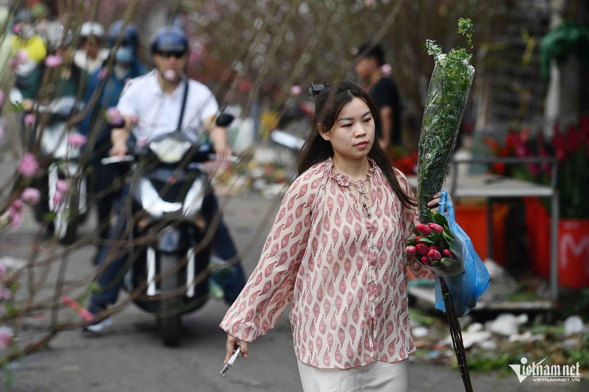 Tương tự, hai mẹ con em Thanh vừa mua được một cành đào đẹp giá chỉ 500.000 đồng. Mẹ của Thanh cho rằng, nếu mua từ vài hôm trước sẽ đắt gấp 3 lần.