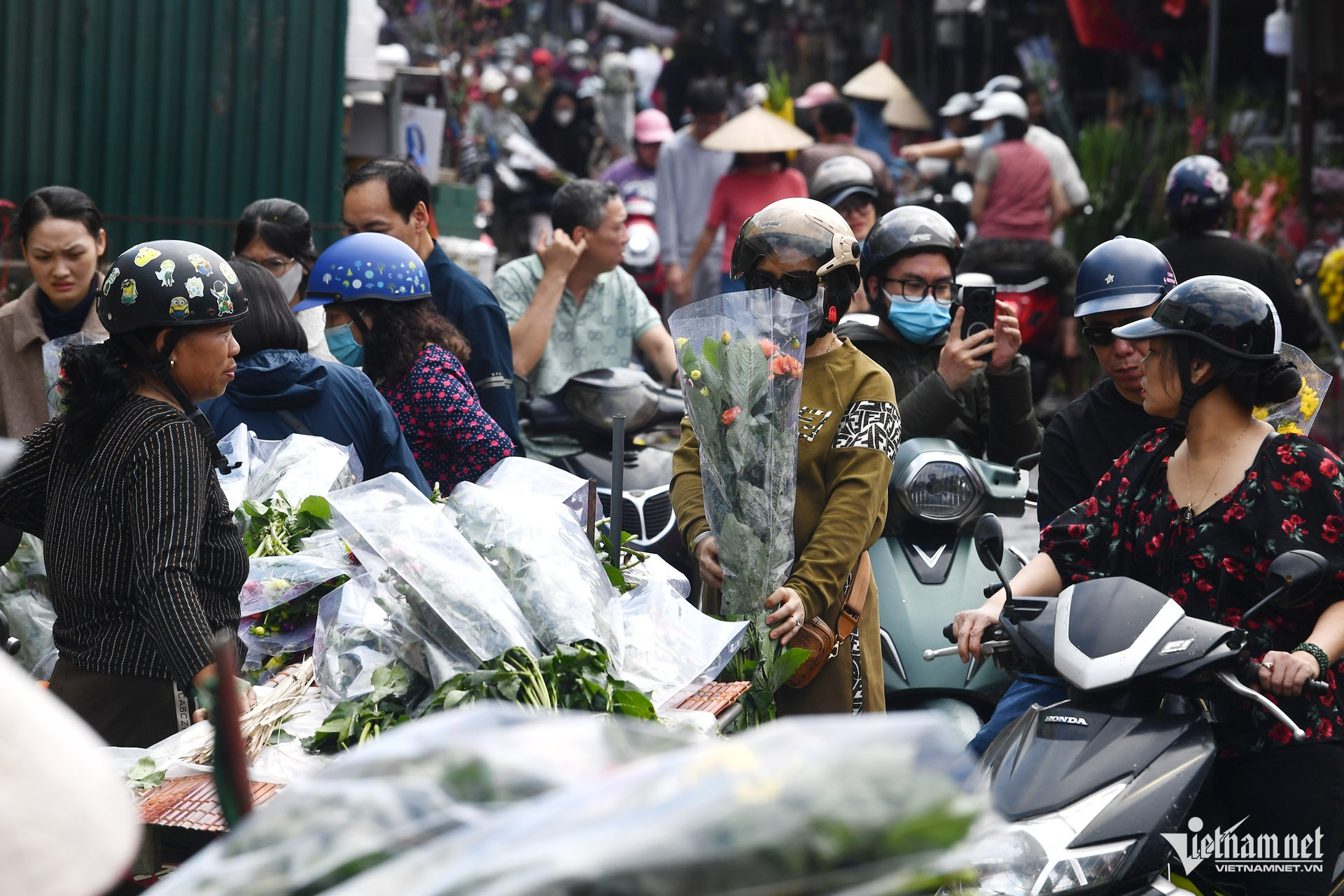 Tại chợ Quảng Bá trưa 29 Tết, nhiều phụ nữ đi mua hoa thời gian này để đảm bảo độ tươi được lâu khi trưng bày trong nhà.