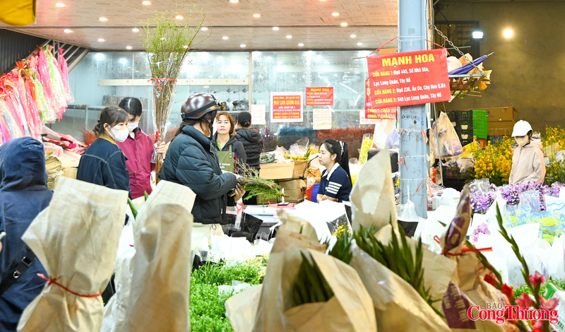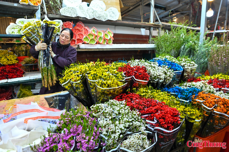 Theo ghi nhận của phóng viên, ngay từ lối vào chợ, không khí mua bán đã sôi động. Các loại hoa được xếp thành từng bó lớn, tỏa hương thơm ngát.