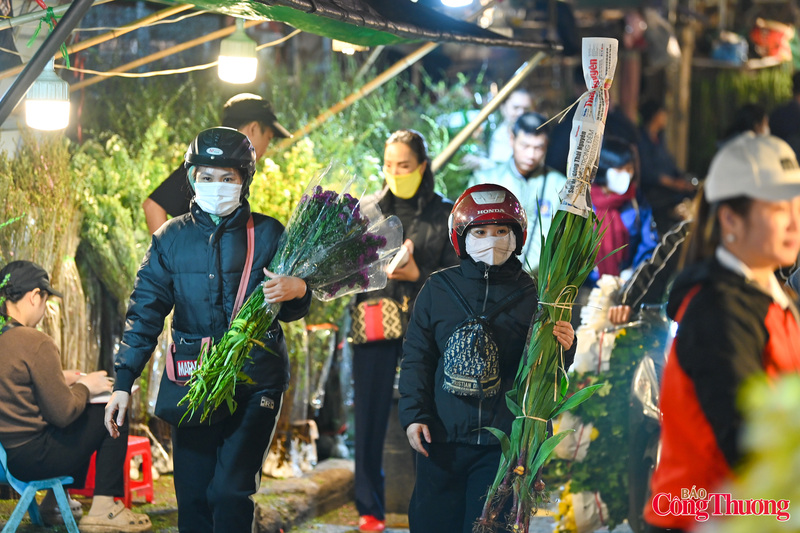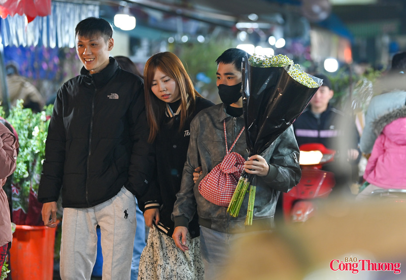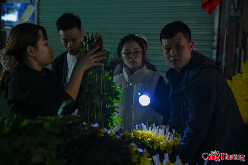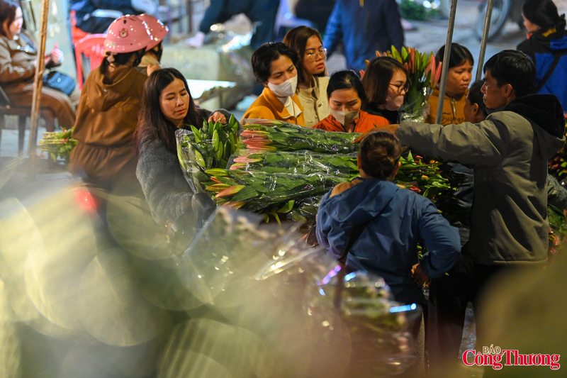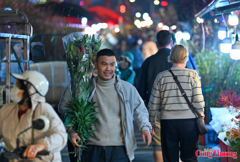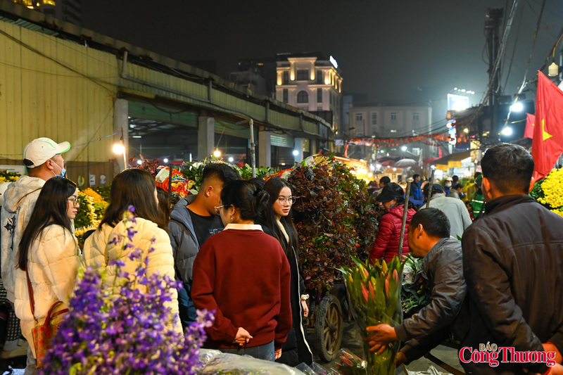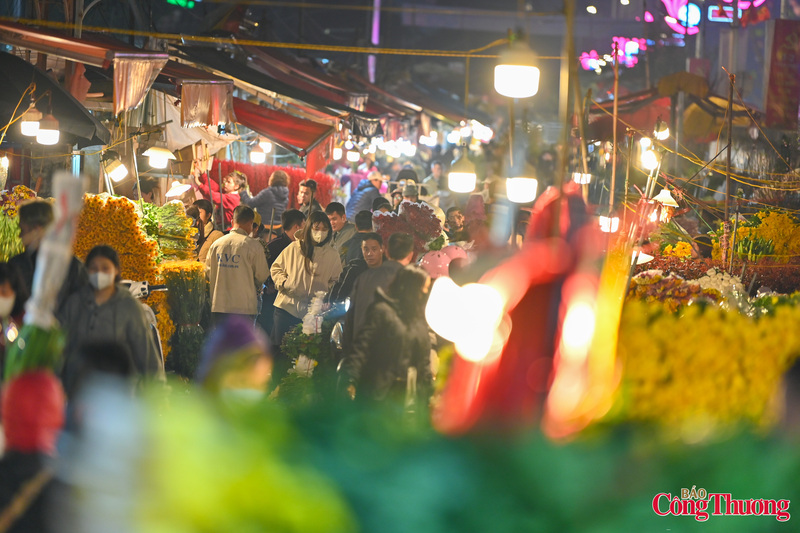 Tiếng cười nói, mặc cả xen lẫn tiếng bốc xếp hàng hóa tạo nên bức tranh sinh động đặc trưng của chợ hoa đêm những ngày giáp Tết.