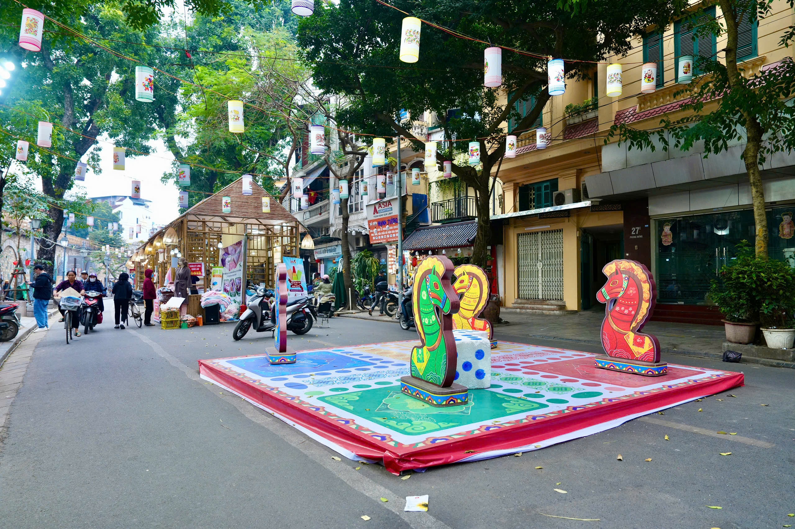 Mô hình bàn cờ cá ngựa khổng lồ tại phố bích họa Phùng Hưng