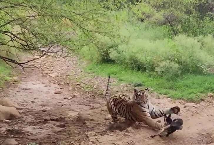 - Video: Chó hoang sủa thách thức hổ và cái kết thảm khốc. Nguồn: Lakhan Rana.