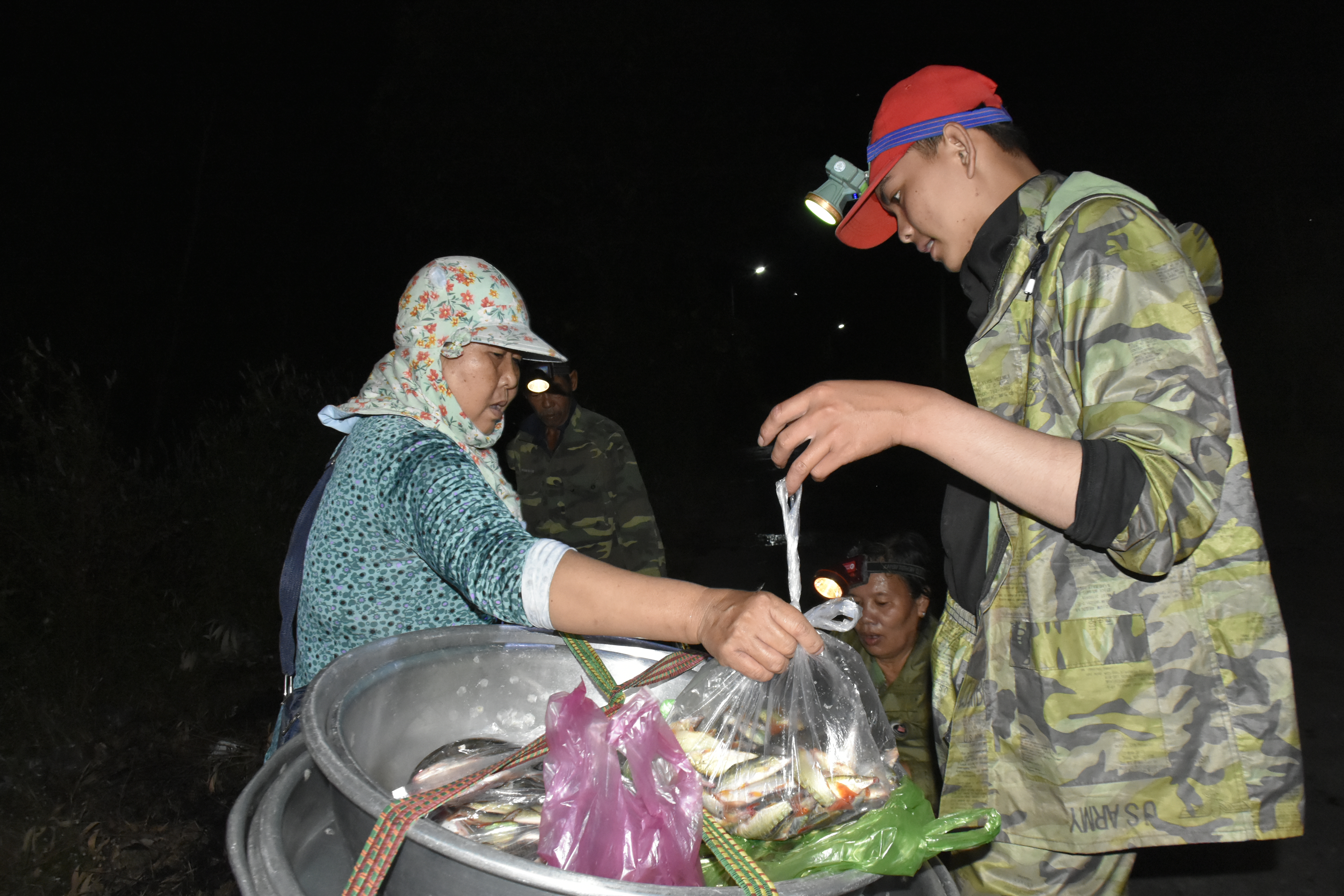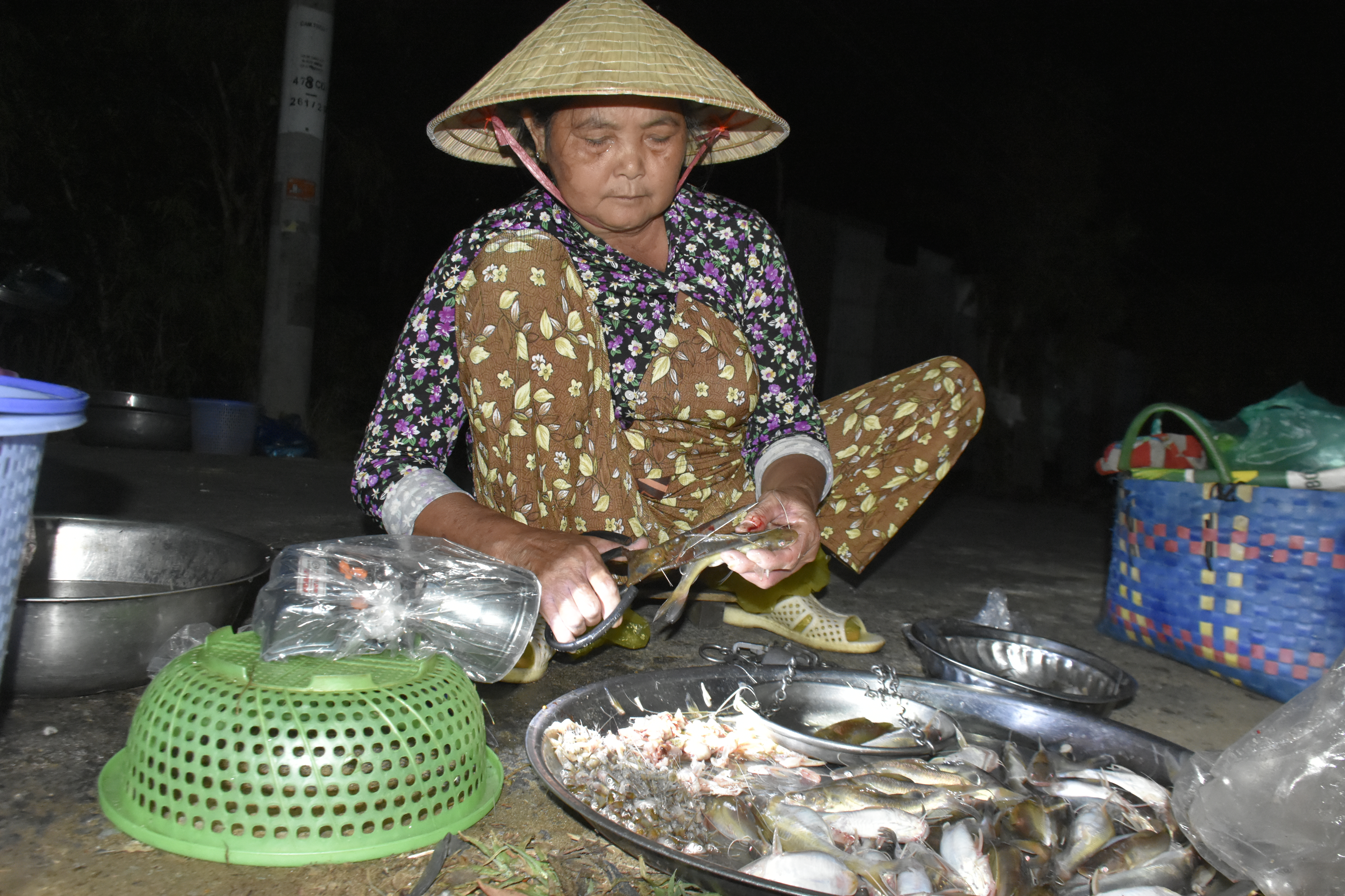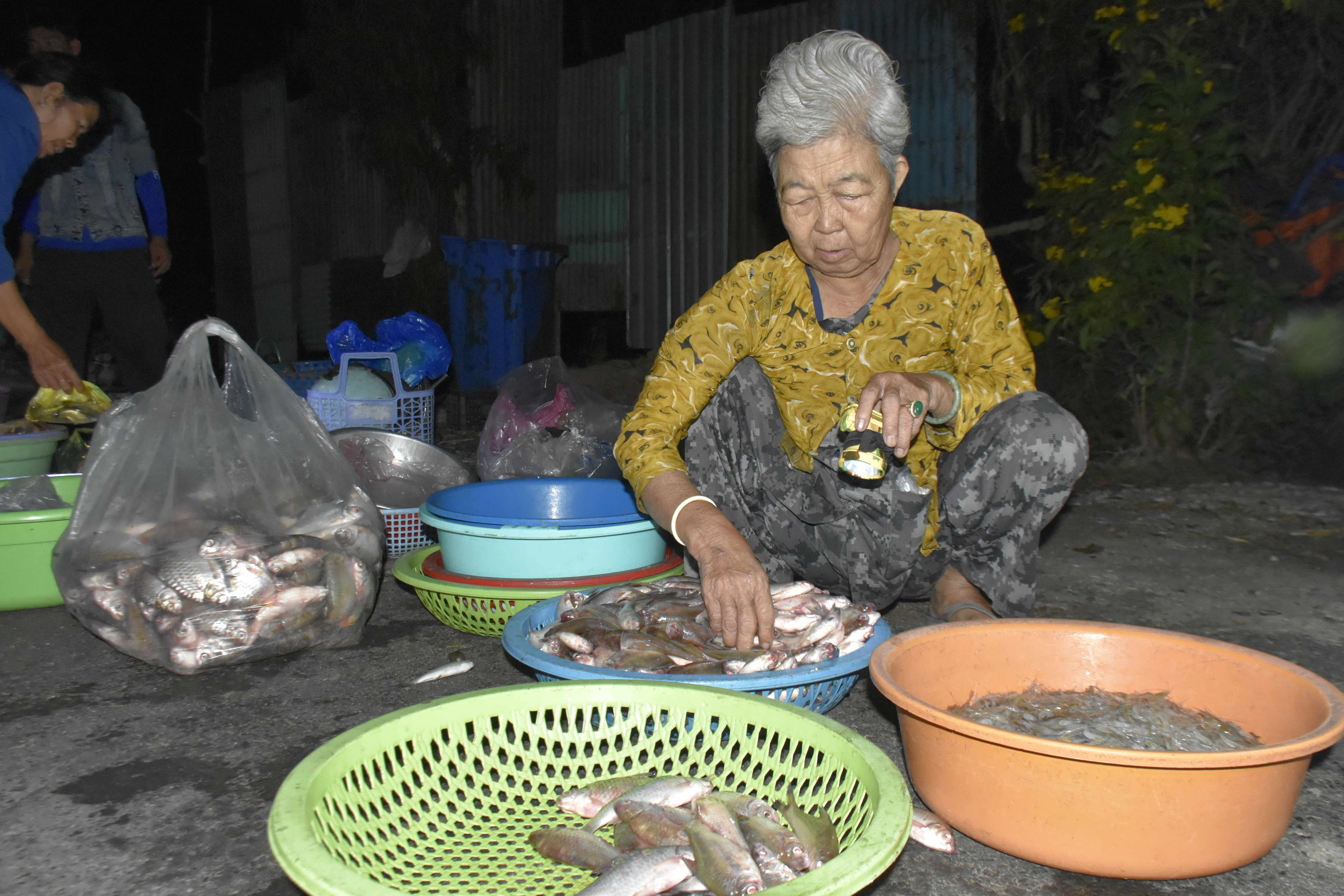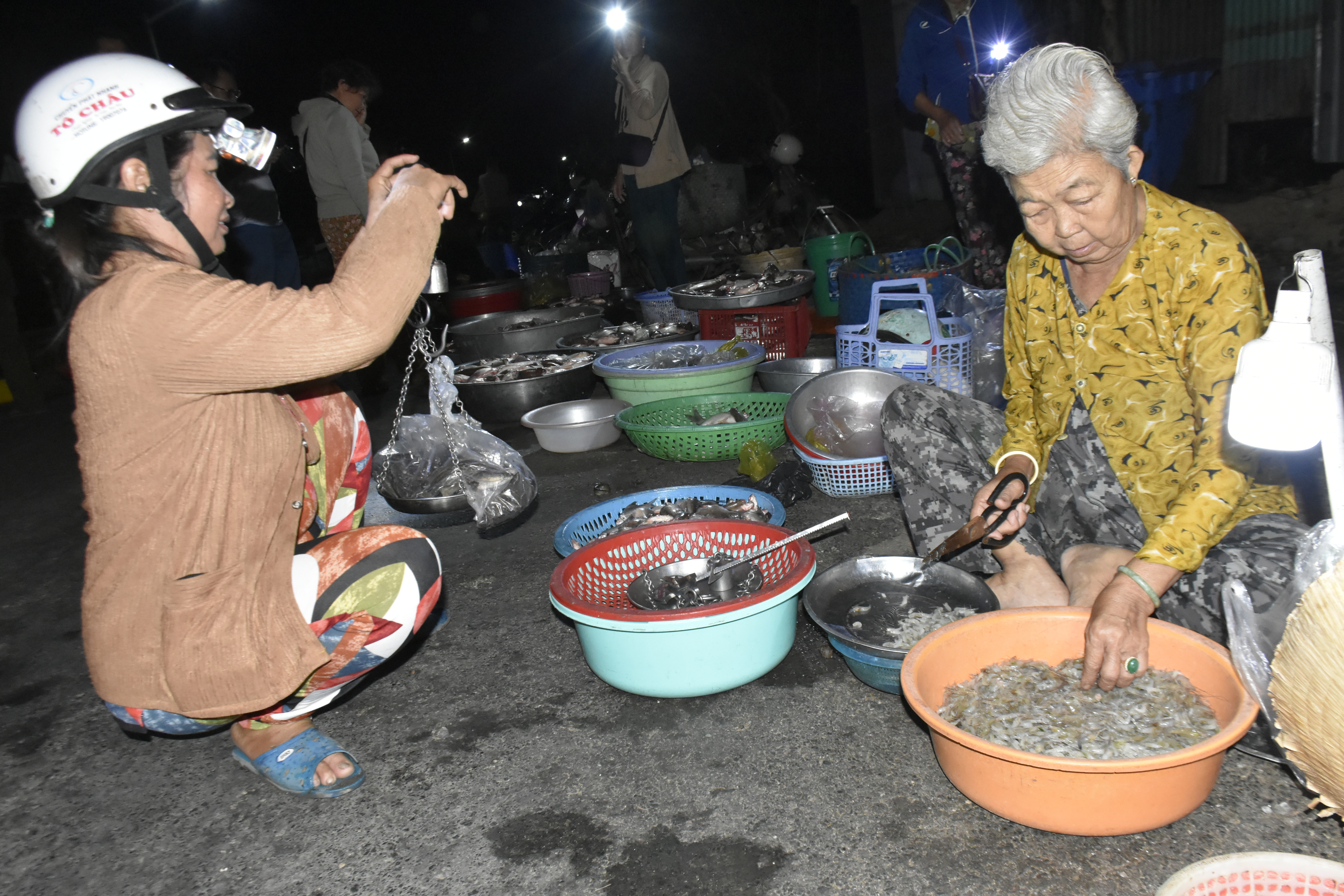 Người dân địa phương trong vùng cũng đi chợ sớm để mua được cá, tôm tươi