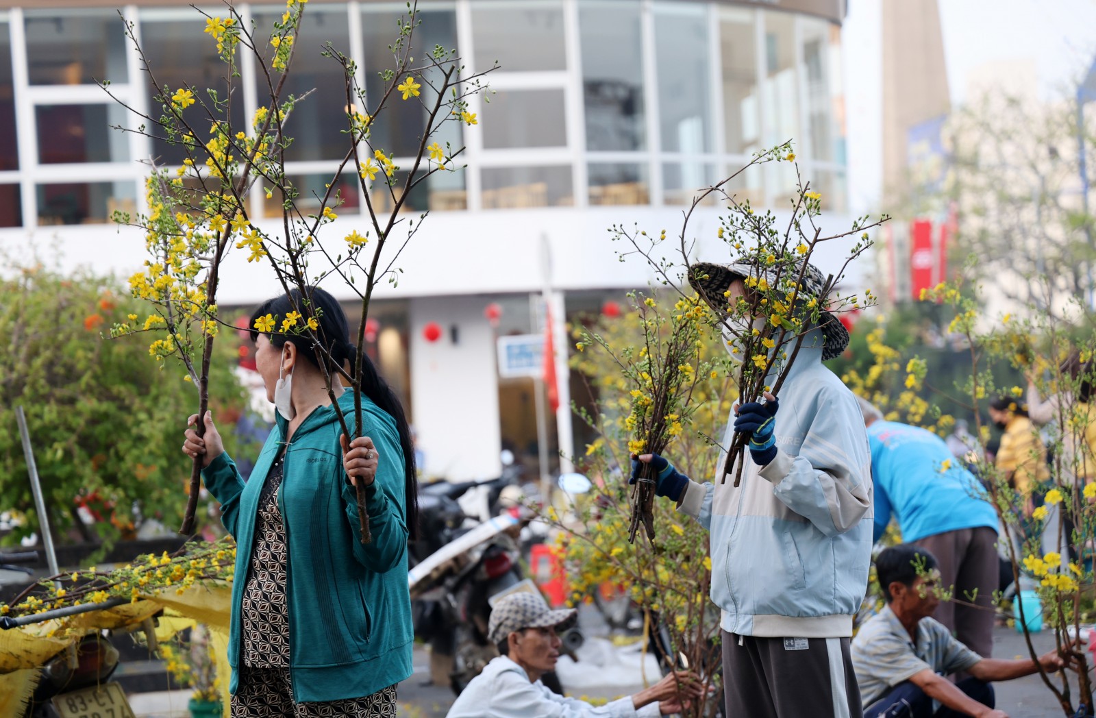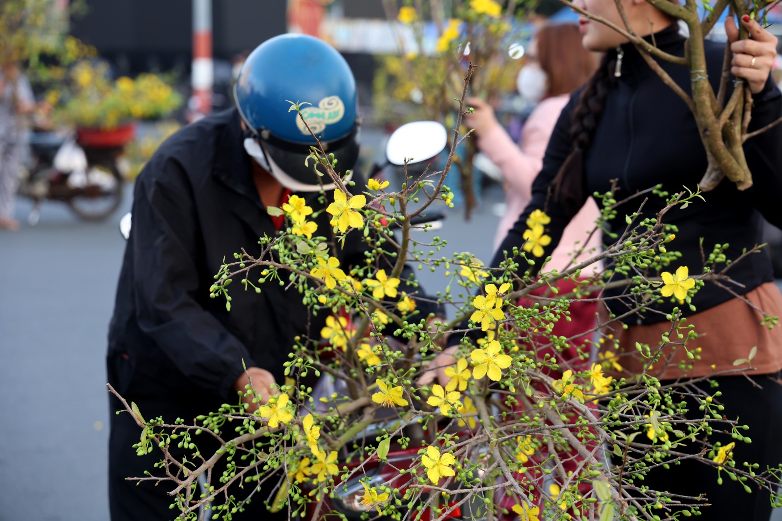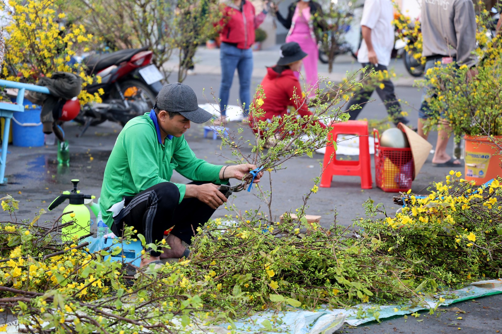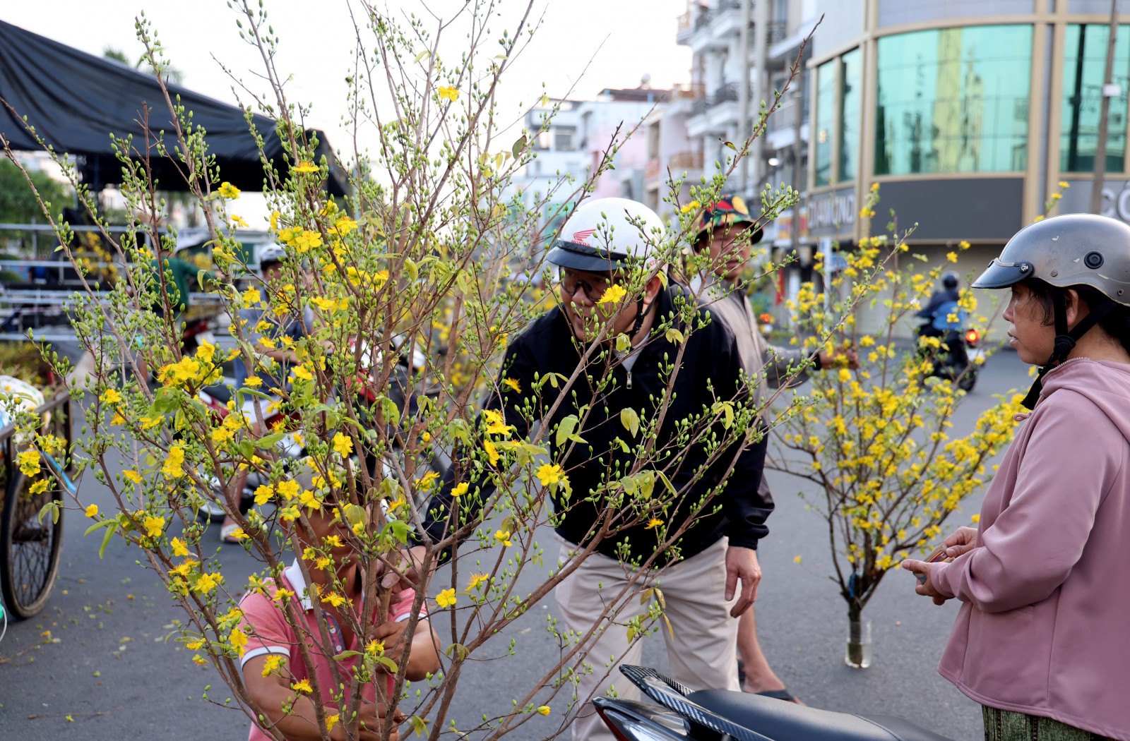“Nhà tôi thích cắm nhánh mai lên bàn khách, điểm thêm vài phụ kiện đồng tiền, cá chép… Trước có 2 cây mai, nhưng tôi “cưng” lắm, không nỡ cắt nhánh, nên ra chợ lựa cho tiện”, ông Nguyễn Hồng Phúc, một khách hàng cho biết.