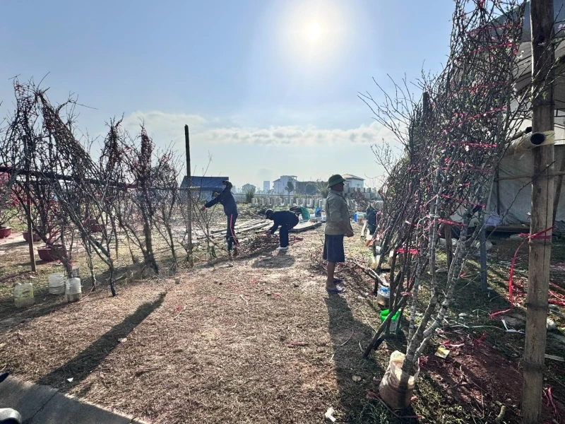 Năm nhuận, tháng thiếu, những ngày cuối cùng của tháng Chạp dường như khó khăn hơn với anh Sơn. Đào nở sớm. Cả trăm gốc đào, nụ nào nụ ấy bụ bẫm, báo hiệu một mùa hoa sắc thắm. “Trồng đào như canh bạc giữa trời, dù chăm sóc tốt đến đâu, điều nước, phân bón tính toán thế nào đi chăng nữa thì chỉ nắng ấm kéo dài dăm ngày là đổ hết mọi kế hoạch”, anh Sơn nói.