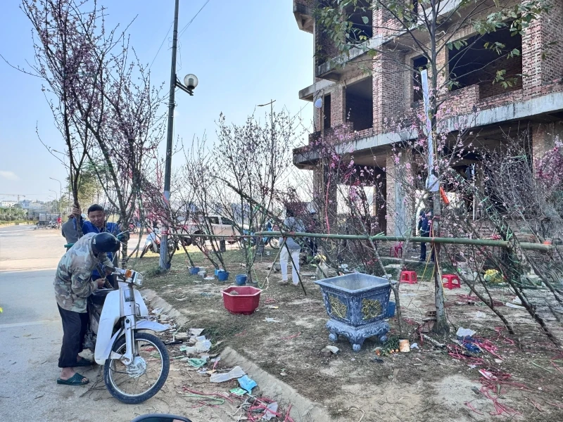 Và người bán đào thu dọn, trả lại cảnh quan đường phố để đón năm mới Bính Ngọ.