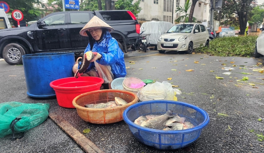 Cá hồ ngày lũ bày bán ở đường Ngô Thế Lân