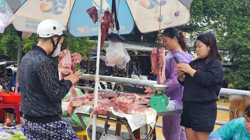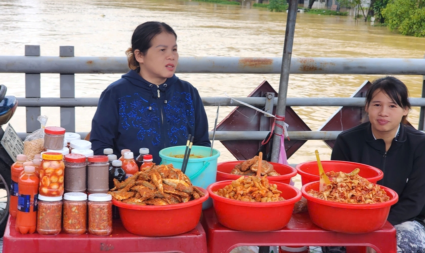 Một tiểu thương bán hàng tại khu vực chợ Bến Ngự cho biết, nhà ở vị trí cao không bị ngập nên mình vẫn tranh thủ đưa hàng về chợ bán. Dù mưa lụt nhưng hàng bán rất chạy. Sản phẩm mình bán toàn “cây nhà lá vườn” nên cố gắng không tăng giá bán để không gây áp lực cho khách hàng trong thời điểm khó khăn như hiện nay”.