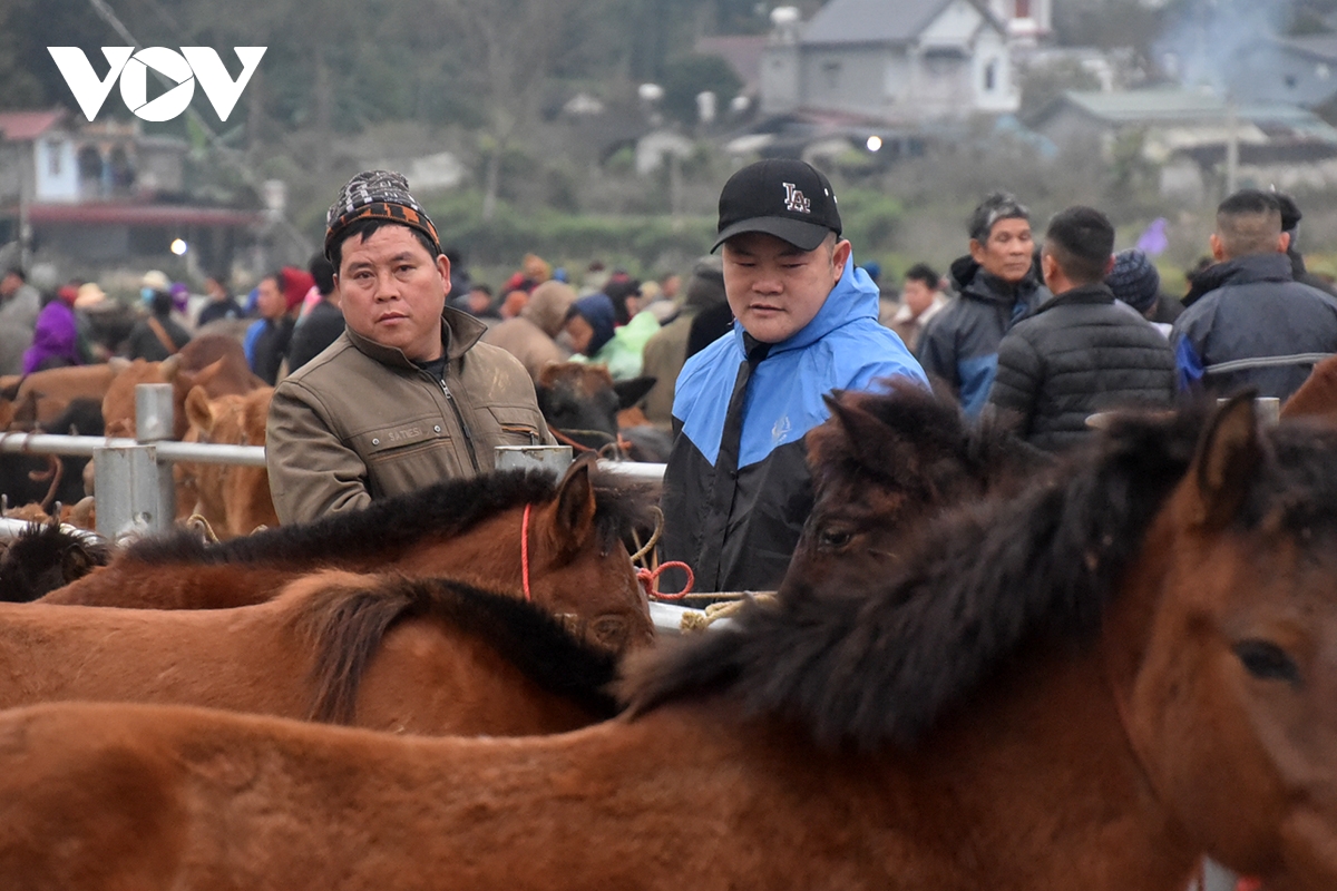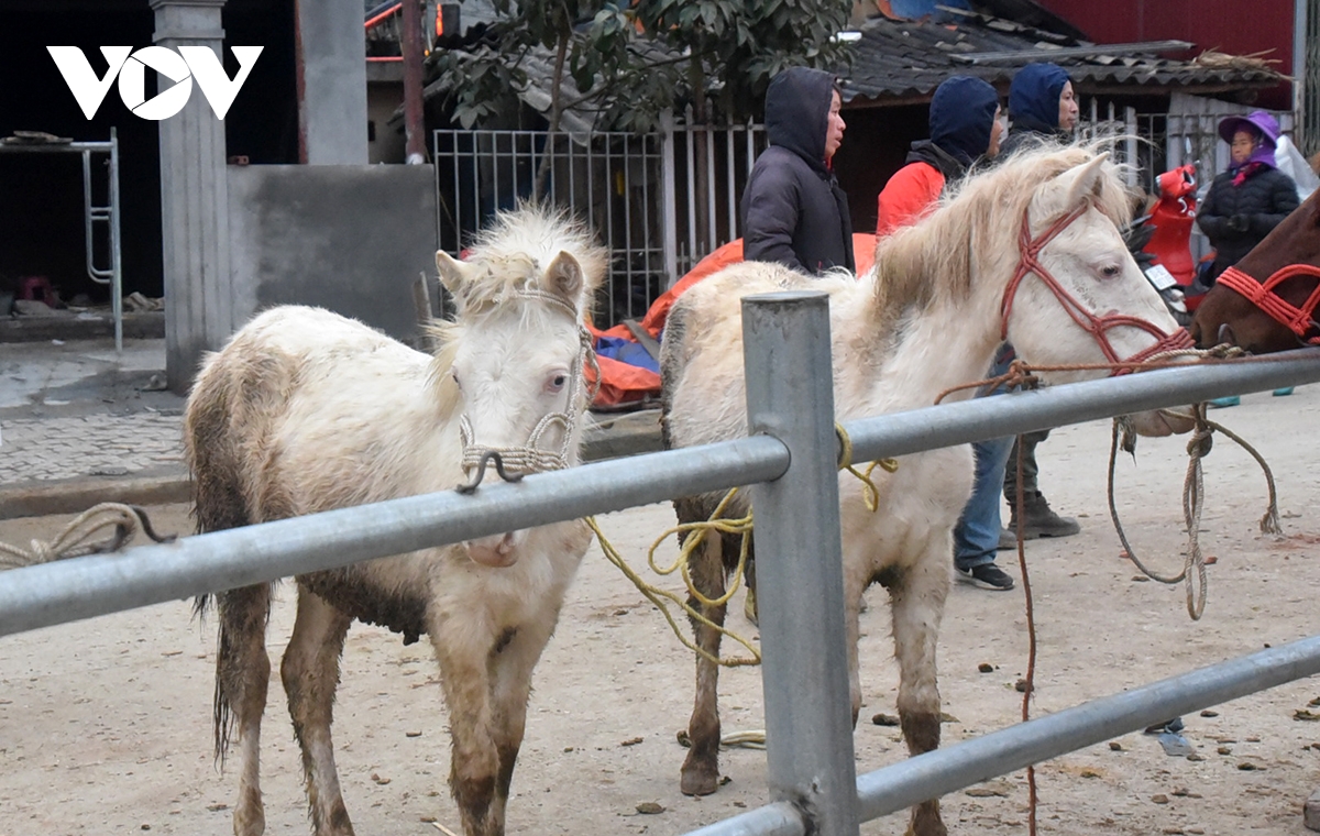Giữa tiếng mặc cả và gọi nhau huyên náo, phần lớn ngựa đứng bình thản vì dường như đã quen với âm thanh này.