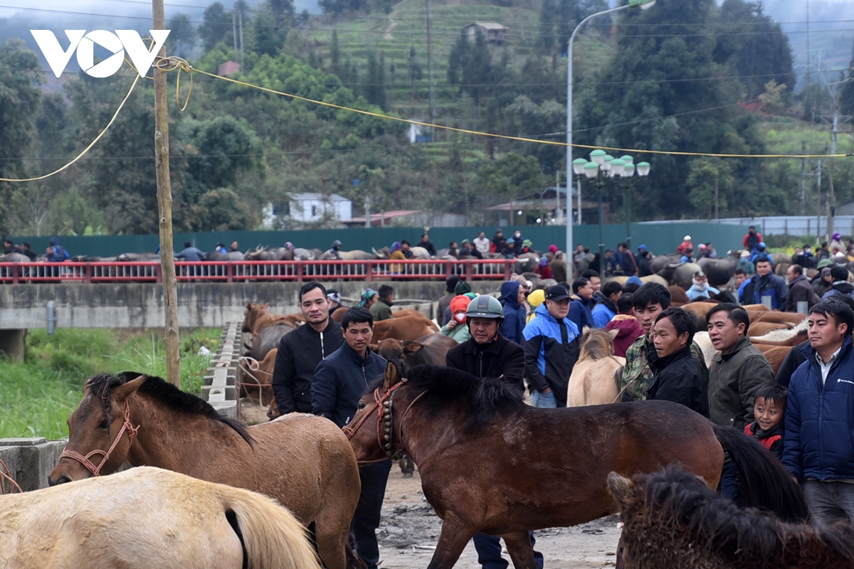 Từ sáng sớm, khi trời còn tối mịt trong sương lạnh bao trùm người dắt ngựa vào chợ chuẩn bị cho một phiên chợ