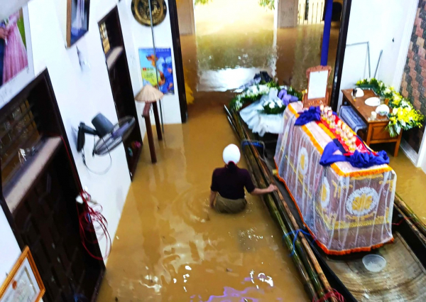 Tại nhà ông Nguyễn Đăng Nhân, Tổ trưởng tổ dân phố Phú Kinh Phường (phường Phong Điền) đang tổ chức đám tang cho cụ bà Nguyễn T. H. (SN 1945; cô ruột ông Nhân). Tuy nhiên, do nước lũ dâng cao vào nhà nên gia đình ông Nhân phải khiêng đặt quan tài của cụ H lên ghe để tránh bị nước ngập. Theo lãnh đạo UBND phường Phong Điền, do cụ H không có con nên gia đình ông Nhân đã tổ chức đám tang cho cụ H và dự định sáng ngày mai (18/11) sẽ di quan để an táng. Tuy nhiên do nước lũ dâng cao vào nhà ông Nhân 1m nên gia đình phải đưa quan tài lên ghe để tránh bị ngập lụt.