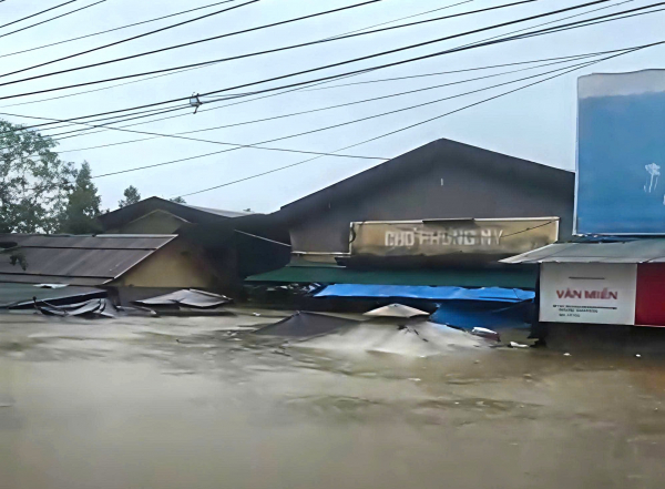 Chợ Phong Mỹ, phường Phong Điền chìm ngập trong nước lũ.