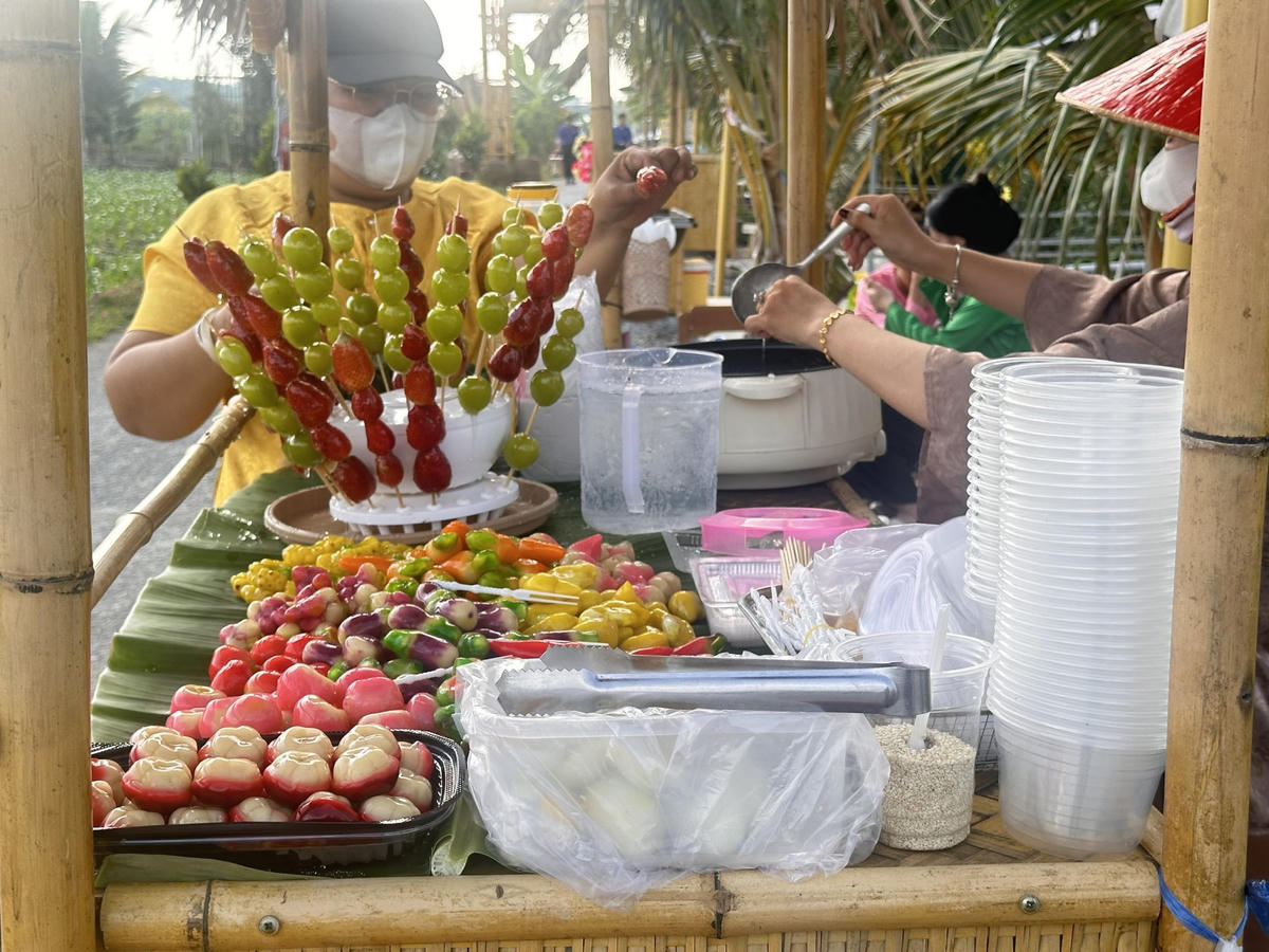 Chợ phiên Xóm Rẫy được tổ chức định kỳ vào chiều thứ Bảy hằng tuần tại khóm 14, nằm giữa cánh đồng thoáng đãng. Ngay từ lối vào, du khách đã cảm nhận rõ không khí làng quê Nam Bộ với những gian hàng dựng bằng tre, lá đơn sơ nhưng gần gũi. Từng sạp nhỏ bày bán rau củ, trái cây, bánh dân gian, nước uống truyền thống… tất cả đều là sản vật “cây nhà lá vườn” do chính tay người dân làm ra.