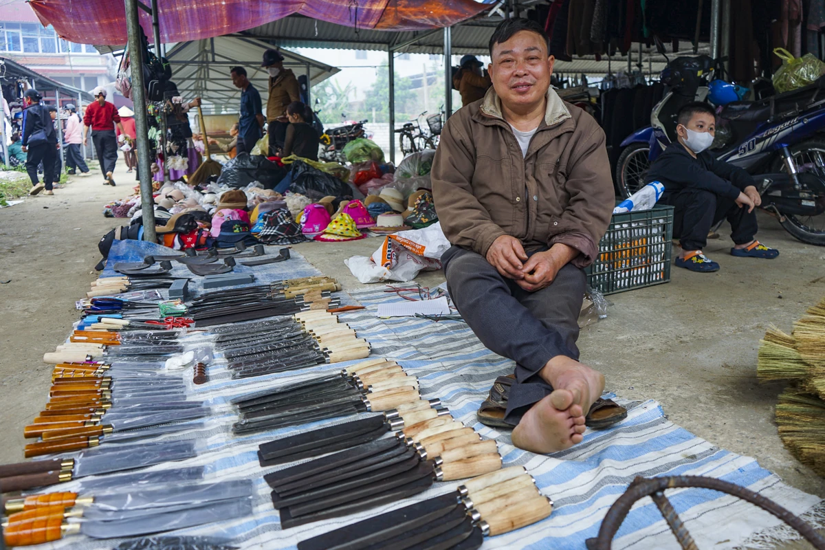 Ở một góc khác, ông Kiều Ngọc Thế (55 tuổi) người có 30 năm bán dao tại chợ bảo rằng chỉ cần nhìn lượng người đi chợ là có thể “đo” được nhịp sống quê hương. Theo ông, chợ Tết không chỉ là nơi trao đổi hàng hóa mà còn là điểm hẹn của những người con xa quê.